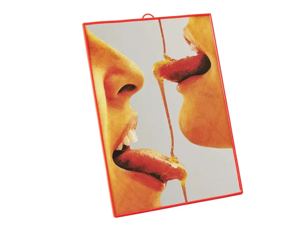 A striking close-up shot of two models adorned with vibrant pink ice lolly matched by the red lip gloss. Printed onto plexiglass this artwork has a sleek and glossy finish. By the artist Harley it is part of our curated collection with Cobra Art.