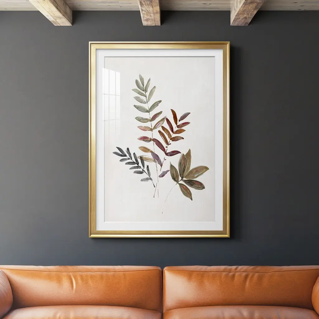 • Oshibana (pressed plants) artwork in a 14" x 17" black frame.• The pressed leaves and flowers are shown in their natural colors and beauty