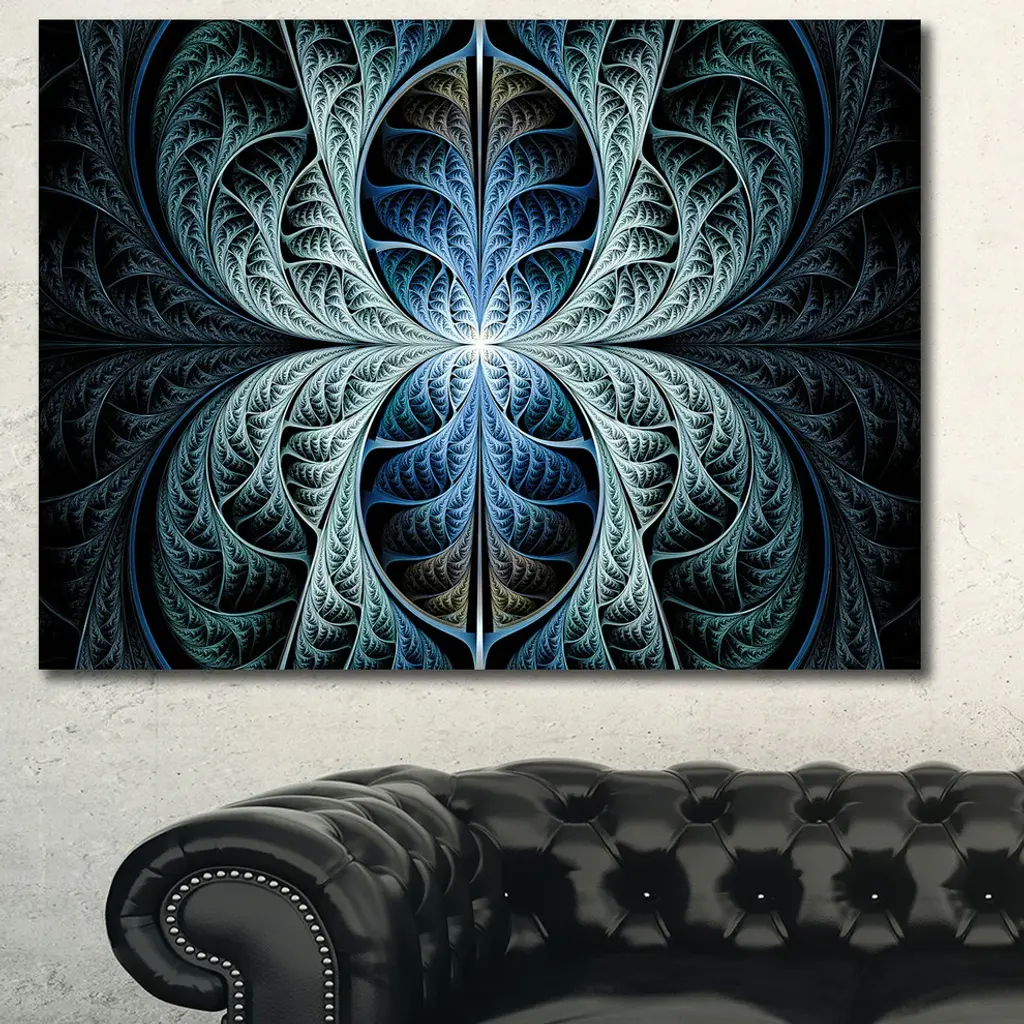 Glowing Blue Fabulous Fractal Art, Oversized Abstract Canvas Art Print, 60x40