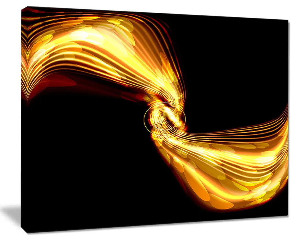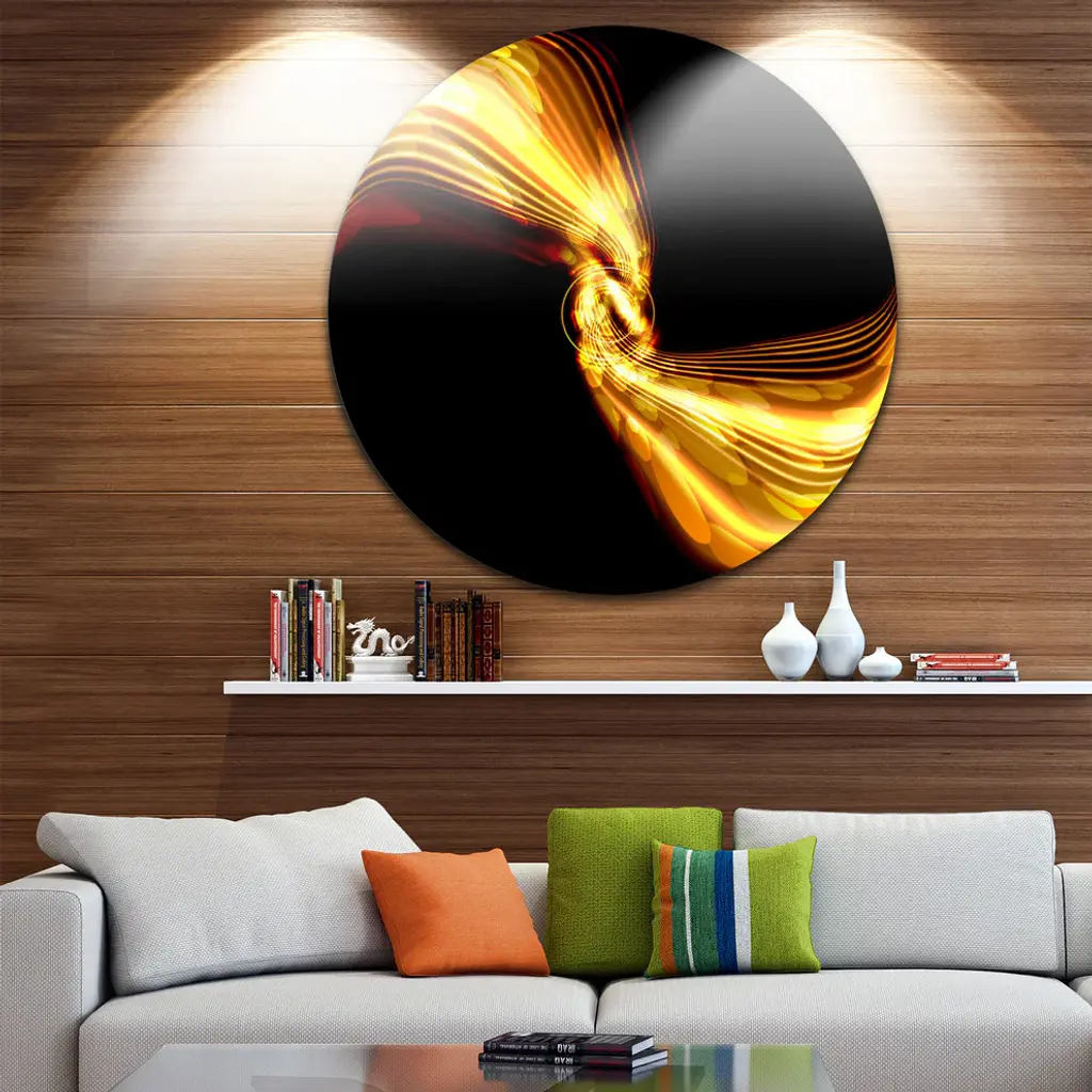 Glowing Golden Lines And Circles, Abstract Digital Round Wall Art, 23"