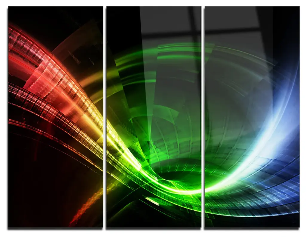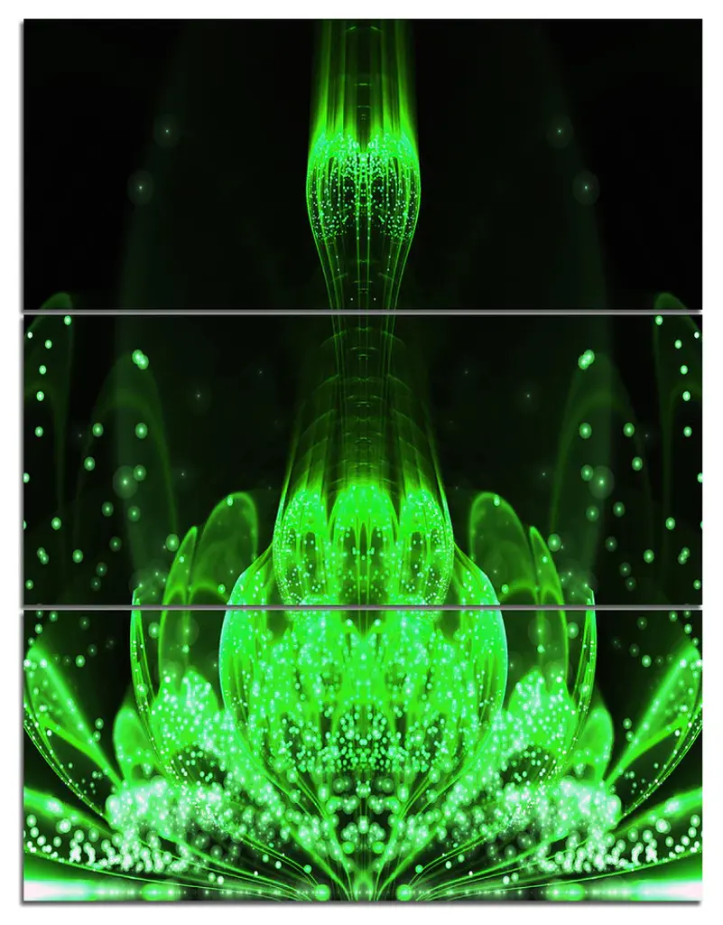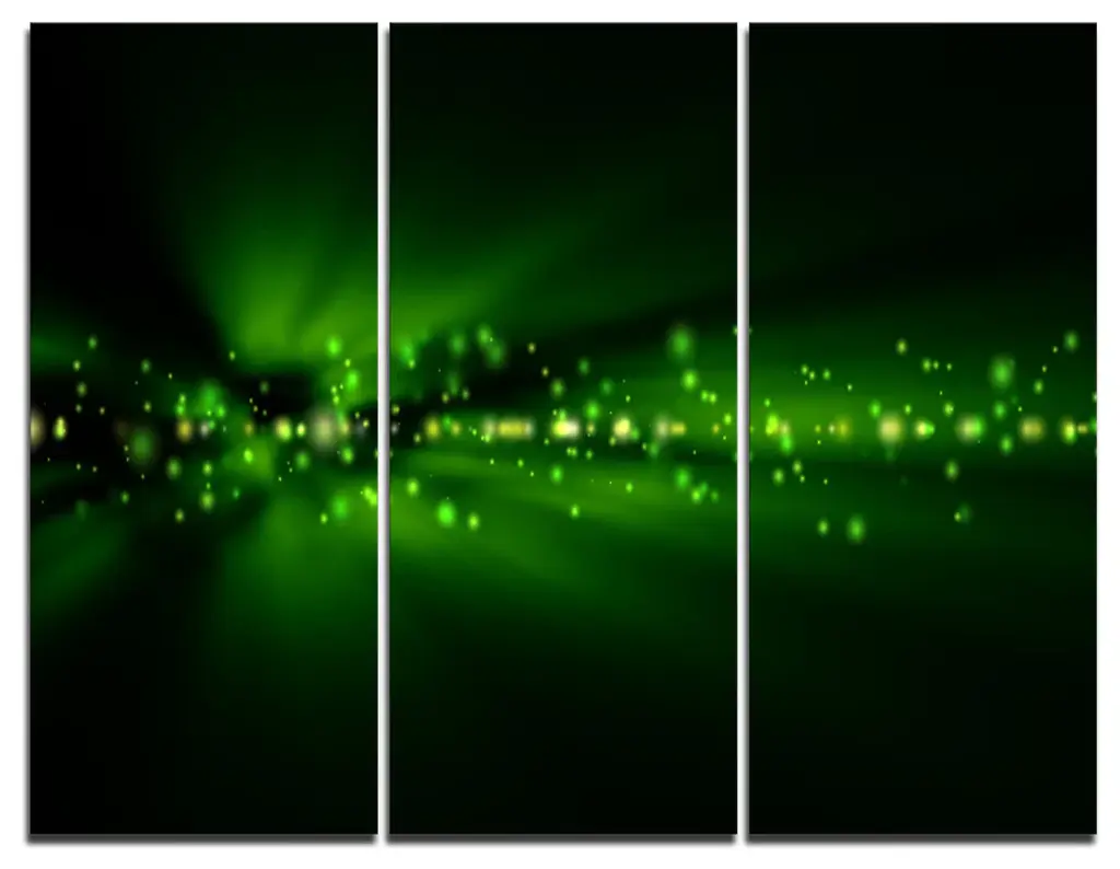 "Glowing Green Circles" Digital Metal Wall Art, 3 Panels, 36"x28"
