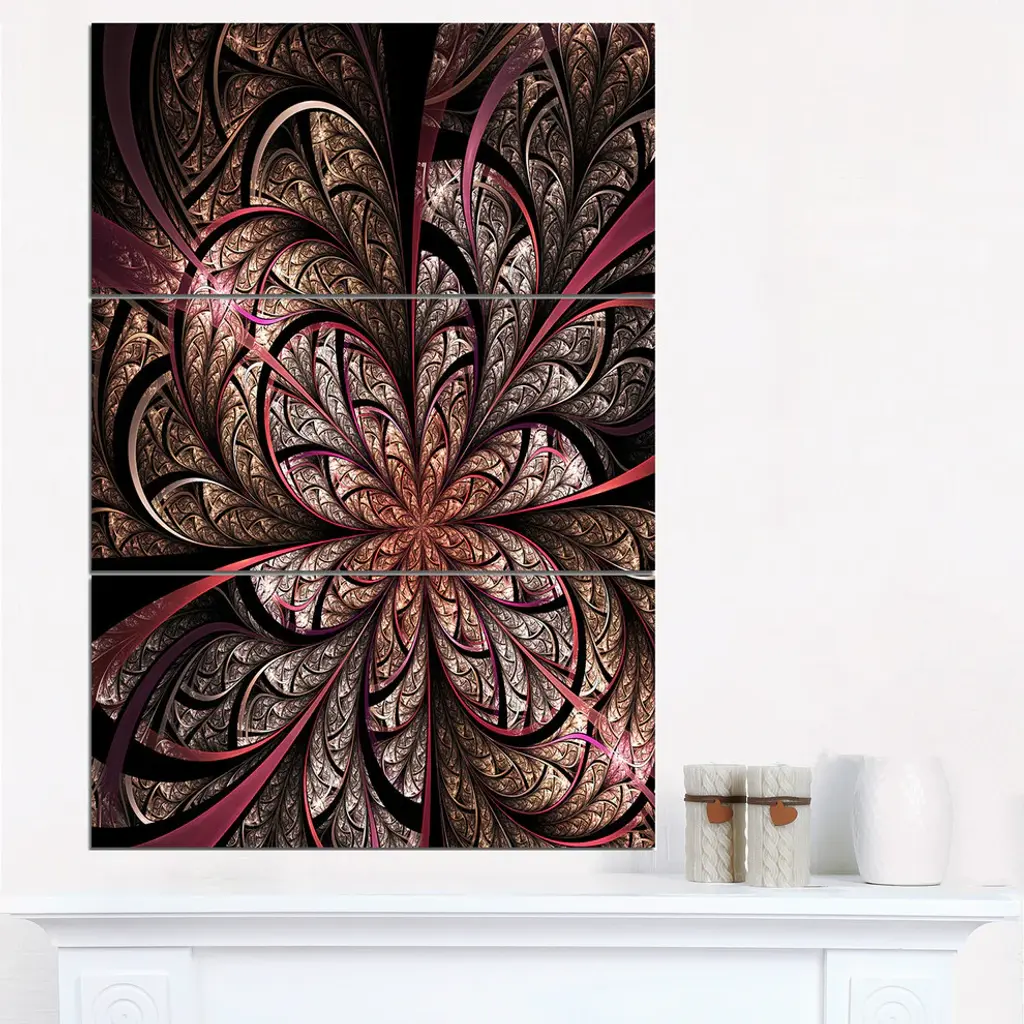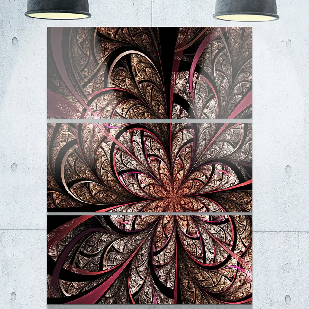 "Glowing Large Fractal Flower Design" Metal Wall Art, 3 Panels, 28"x36"