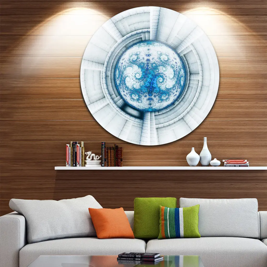 Bring Contemporary Abstraction to your home with this large Circle Metal wall art. This Glowing Soft Blue Fractal Flower Metal Artwork makes it the focal point of any room or office. - White Gloss Coating ensures colors are extra vibrant with light reflection.- Aluminum grade Sheet Metal with 1 inch mounting frame on the back giving the illusion that the artwork is floating on the wall..- Mounting Brackets are included along with instructions.- High Quality Digital images are created directly into a glossy aluminum panel producing a stunning and captivating print into the glossy finish of the metal.- Water, Fire and Scratch resistant HD Aluminum panels.- Looks better than any photo paper and guaranteed to last at least 20 years- Easy to clean with a microfiber cloth. Colors are far superior to regular Canvas Art. - Easy to Hang