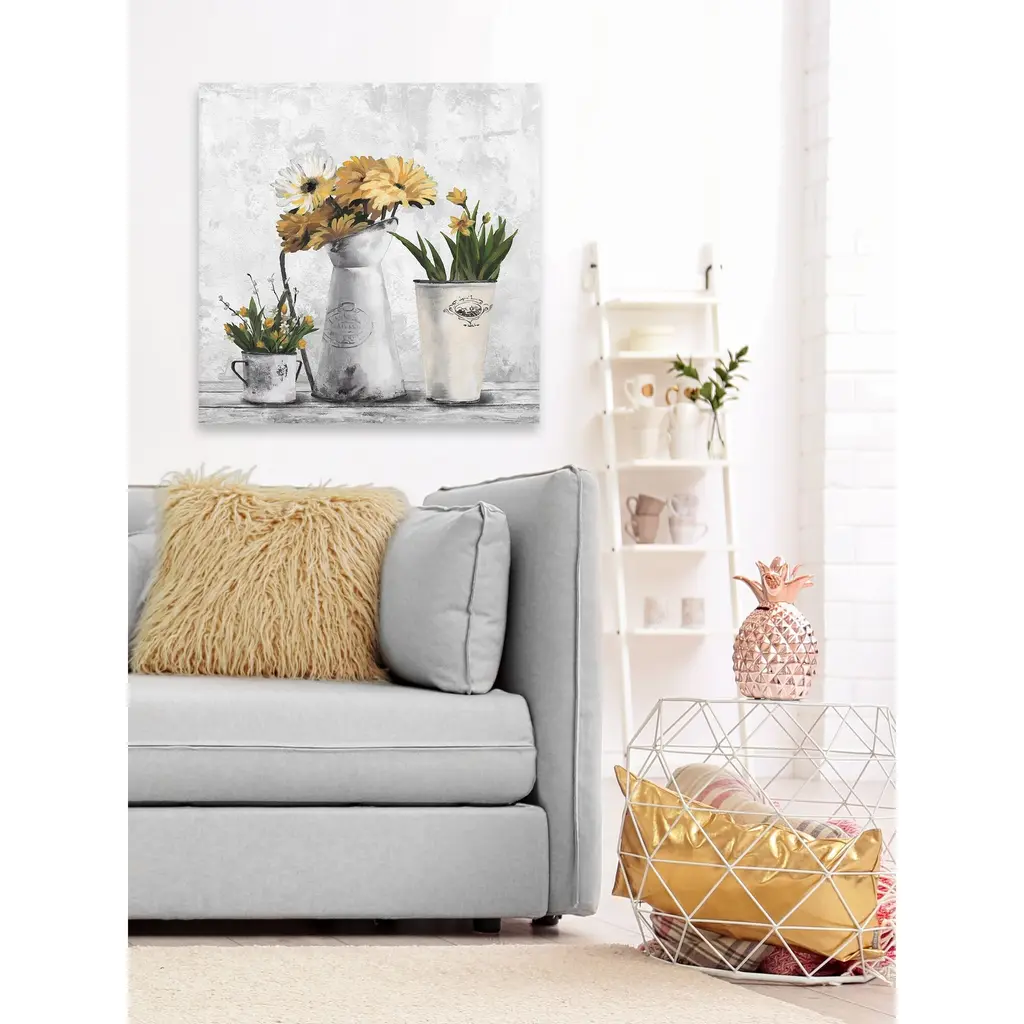 An alluring still life of yellow and green flora of various kinds. This eye-catching yet demure acrylic piece will be a beautiful accent for any room in your home. Proudly made in the USA, this piece is printed on canvas before it's stretched over non-warping wooden bars for a gallery-wrapped look. With wall-mounting hooks included, this artful accent is ready to hang up as soon as it reaches your front door. • Fine art canvas print from the Marmont Hill Art Collective • Professionally hand stretched • Gallery wrapped in sustainable, non-warping wood • Arrives ready to hang • Made in the USA • Includes a certificate of authenticity
