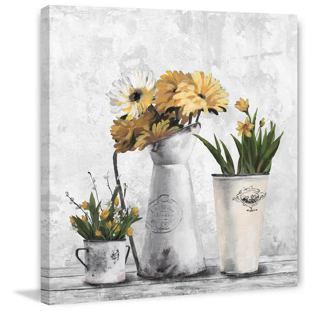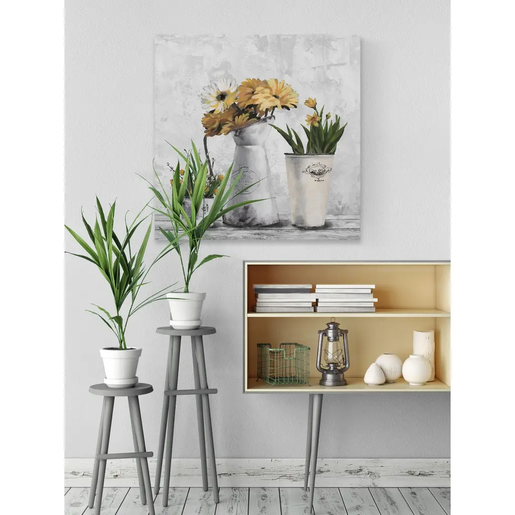 An alluring still life of yellow and green flora of various kinds. This eye-catching yet demure acrylic piece will be a beautiful accent for any room in your home. Proudly made in the USA, this piece is printed on canvas before it's stretched over non-warping wooden bars for a gallery-wrapped look. With wall-mounting hooks included, this artful accent is ready to hang up as soon as it reaches your front door. • Fine art canvas print from the Marmont Hill Art Collective • Professionally hand stretched • Gallery wrapped in sustainable, non-warping wood • Arrives ready to hang • Made in the USA • Includes a certificate of authenticity