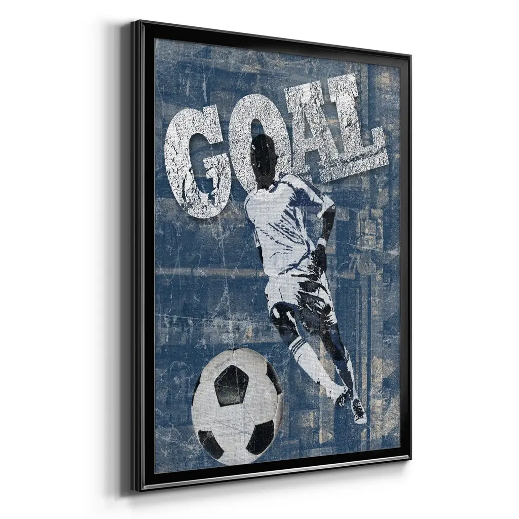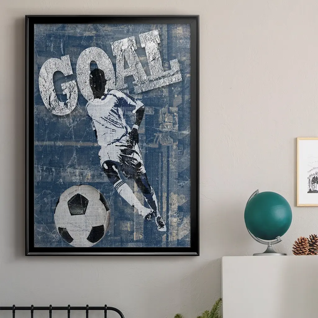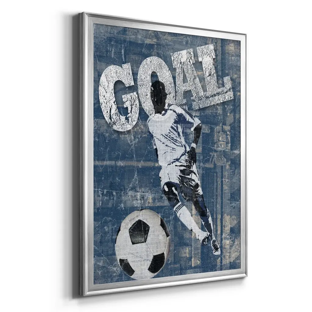 Goal Scorer Premium Framed Print - Ready to Hang A Premium Framed Print created to last. Framed in distressed wood and available in an array of sizes and colors Featuring a beveled a solid wood stretcher bar, each piece comes ready to hand 4 SIZES AVAILABLE 30.5''X42.5'' - Overall Size 26.5'X36.5'' - Overall Size 22.5''x30.5'' - Overall Size 18.5''x24.5'' - Overall Size Each piece is made to order. Each piece comes with hanging hardware. Made in the USA Ready to Hang