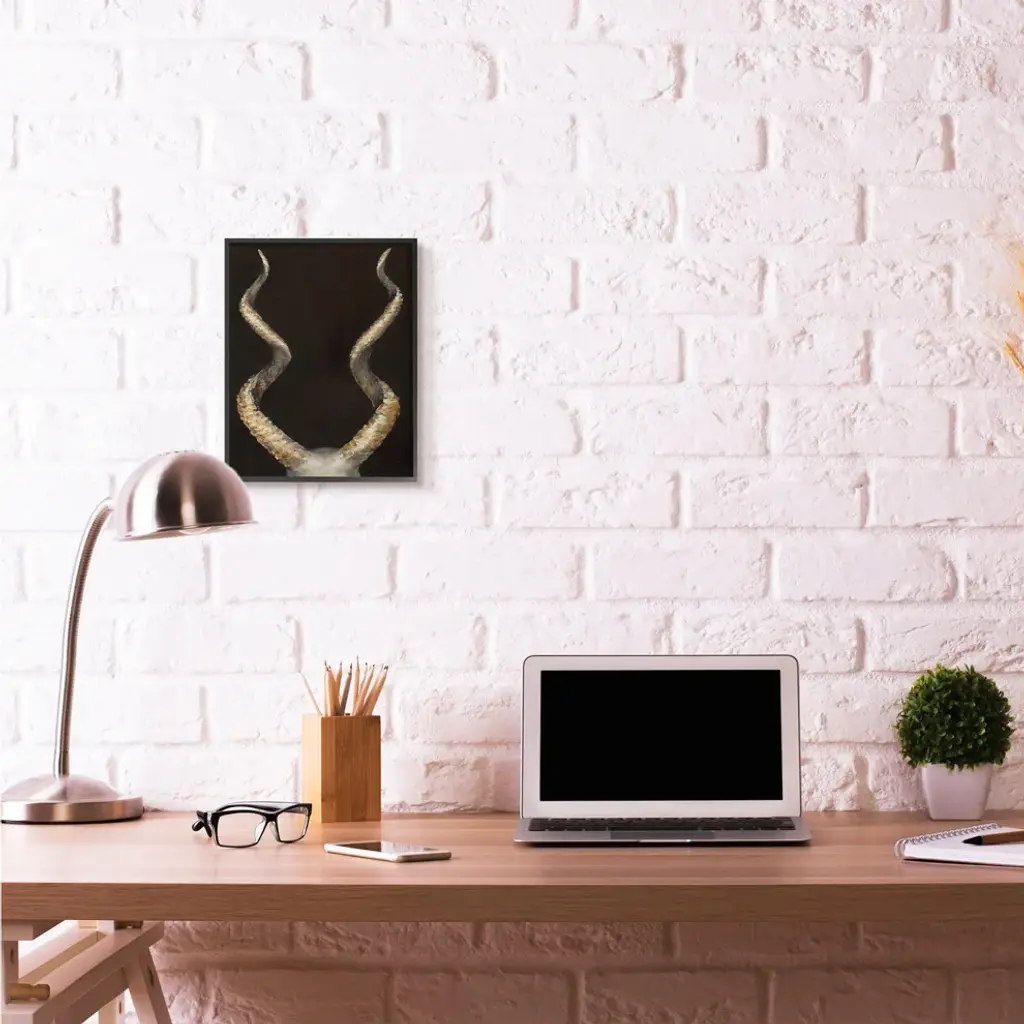 Goat Horns Shadow Black Gold Animal Painting, 11"x14"