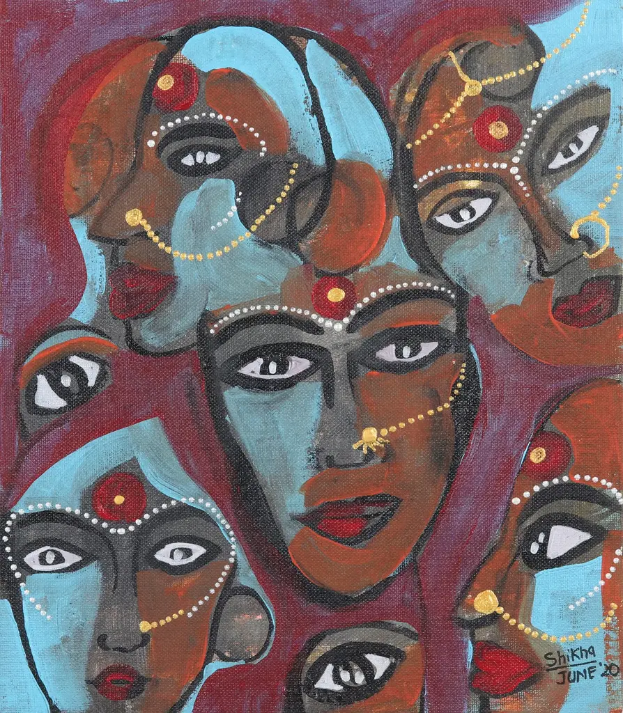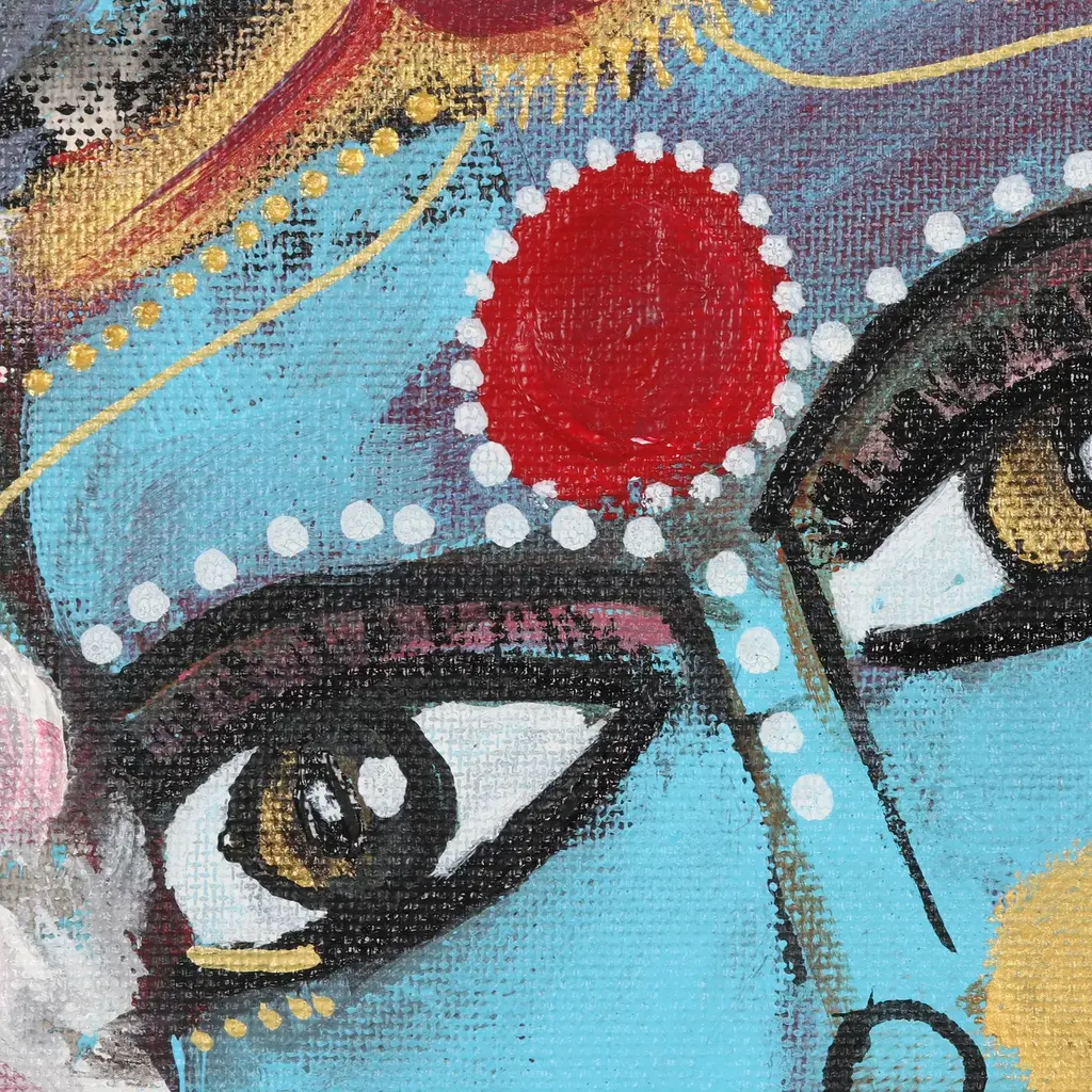 Hindu goddess Parvati beams with a radiant glow in this lovely painting by India's Shikha Kaistha. Wearing elaborate jewelry and a crown of flowers, the goddess prepares for her wedding to Lord Shiva, the Hindu God of protection and the regenerator of the universe.