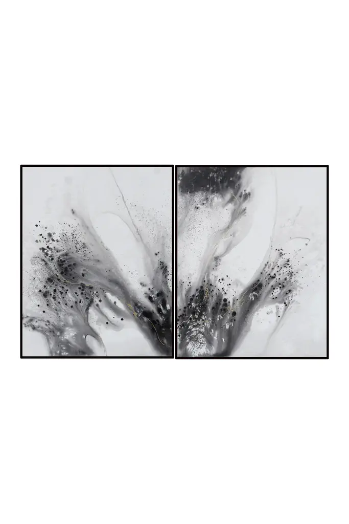 Modernist painting set by Liang & Eimil evokes a luxurious vibe in any home. Reminiscent of raw crystals laced with gold, this artwork carries a real sense of elegance. Hang it on your wall and see your space instantly become more opulent. D2 x | Weight 18lbs| Weight 8kgs
