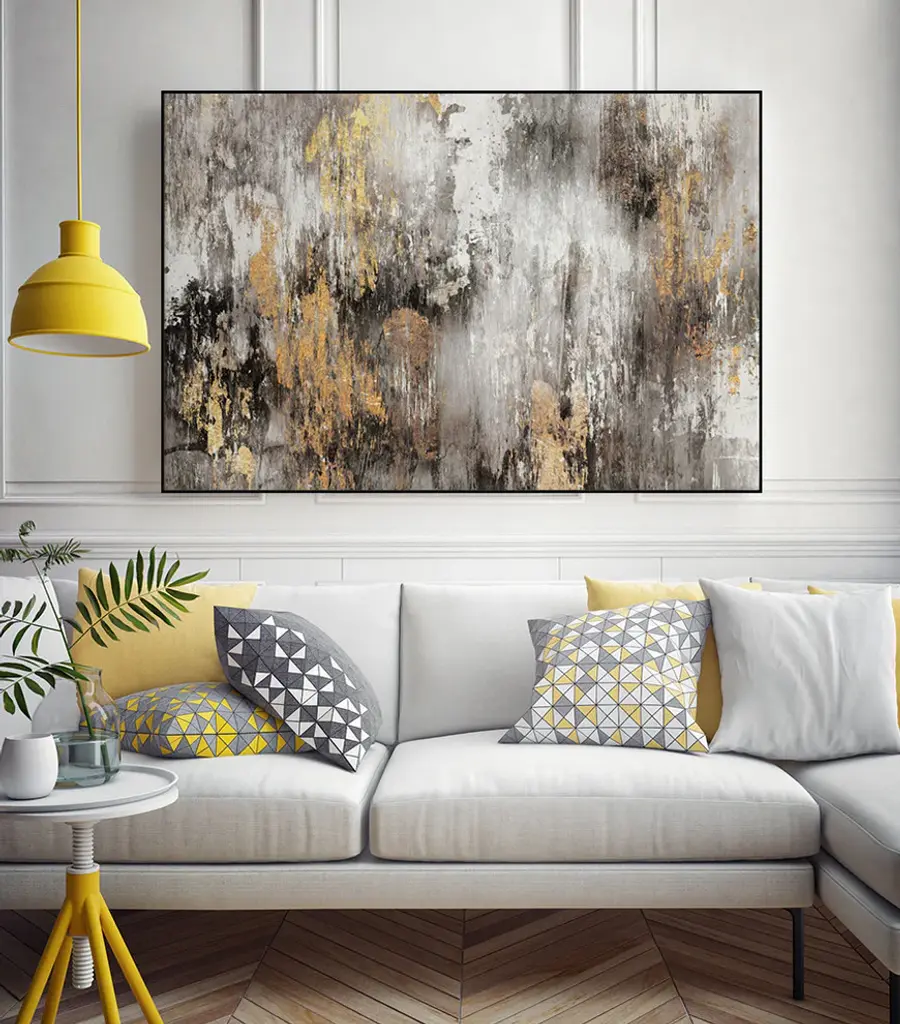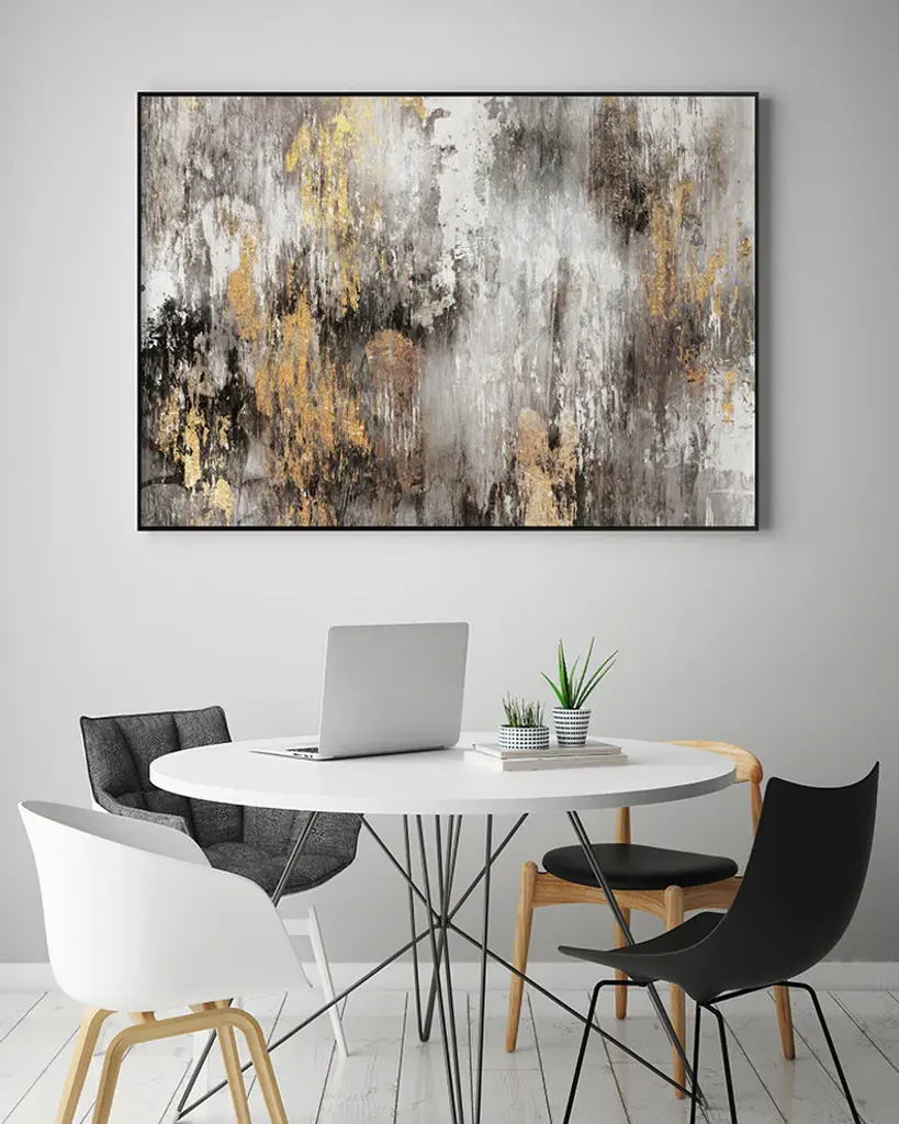 Your ready to hang artwork is printed on canvas then stretched and mounted to a 2-inch thick - hand stained black wood frame. Arrives at your door complete with an easy to use self-leveling hangking kit.
