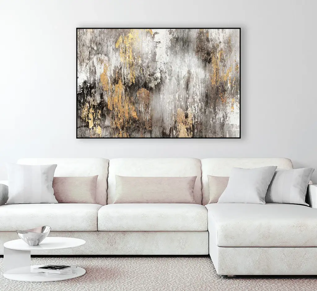 Your ready to hang artwork is printed on canvas then stretched and mounted to a 2-inch thick - hand stained black wood frame. Arrives at your door complete with an easy to use self-leveling hangking kit.