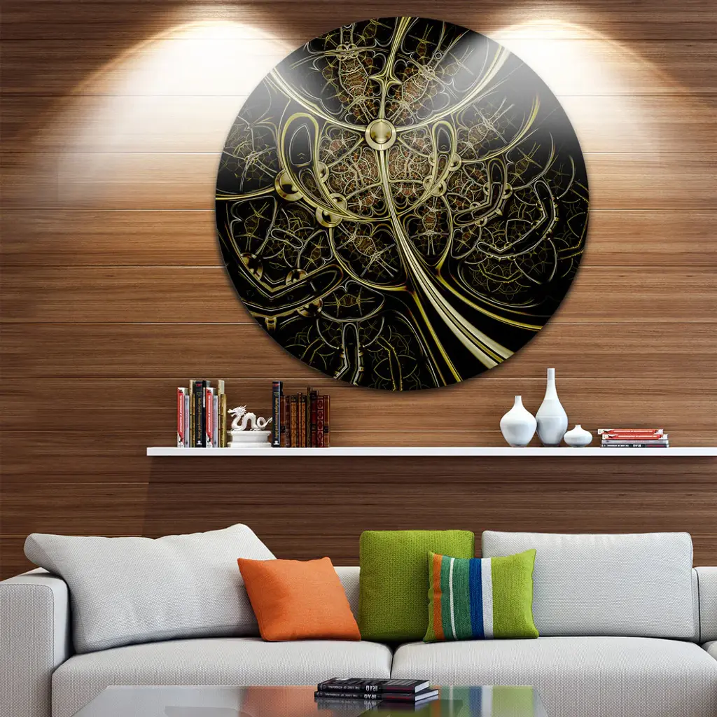 Bring Contemporary Abstraction to your home with this large Circle Metal wall art. This Gold Metallic Fabric Pattern Metal Artwork makes it the focal point of any room or office. - White Gloss Coating ensures colors are extra vibrant with light reflection.- Aluminum grade Sheet Metal with 1 inch mounting frame on the back giving the illusion that the artwork is floating on the wall..- Mounting Brackets are included along with instructions.- High Quality Digital images are created directly into a glossy aluminum panel producing a stunning and captivating print into the glossy finish of the metal.- Water, Fire and Scratch resistant HD Aluminum panels.- Looks better than any photo paper and guaranteed to last at least 20 years- Easy to clean with a microfiber cloth. Colors are far superior to regular Canvas Art. - Easy to Hang