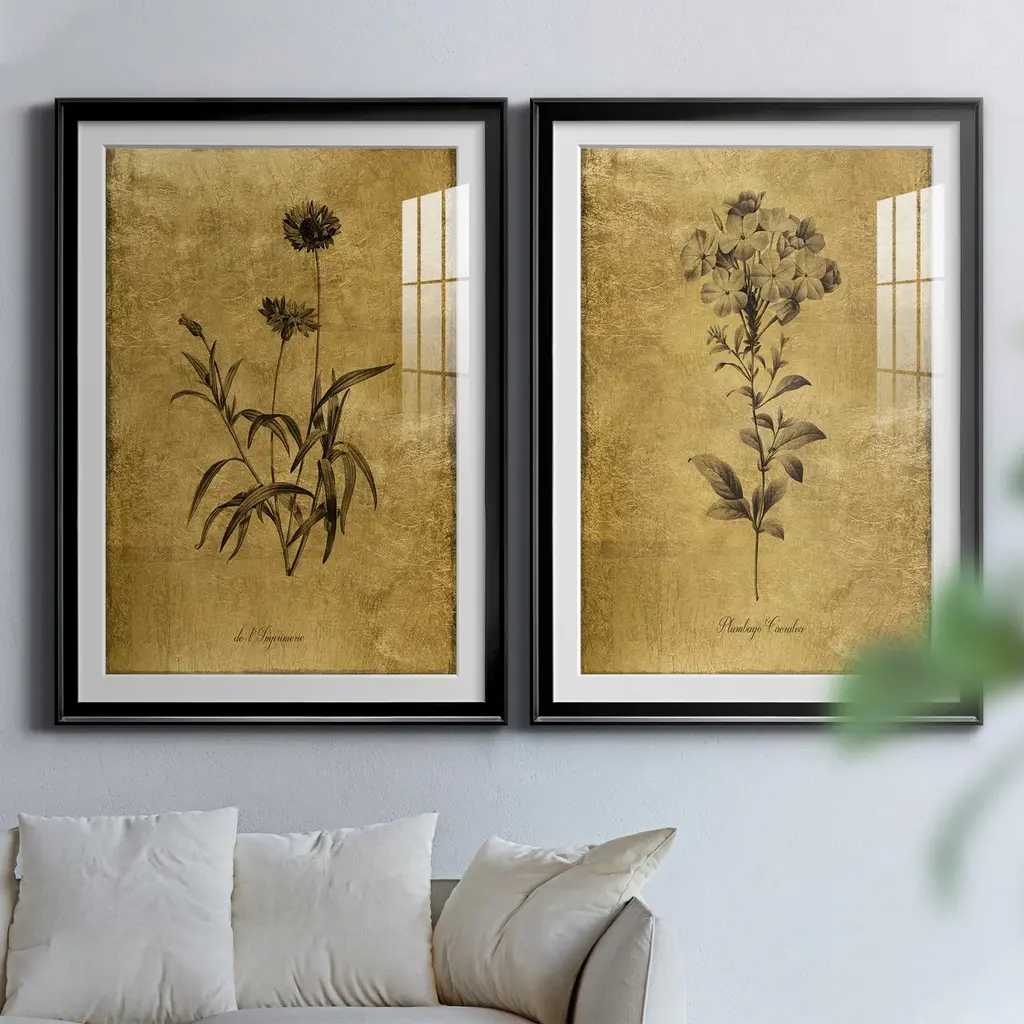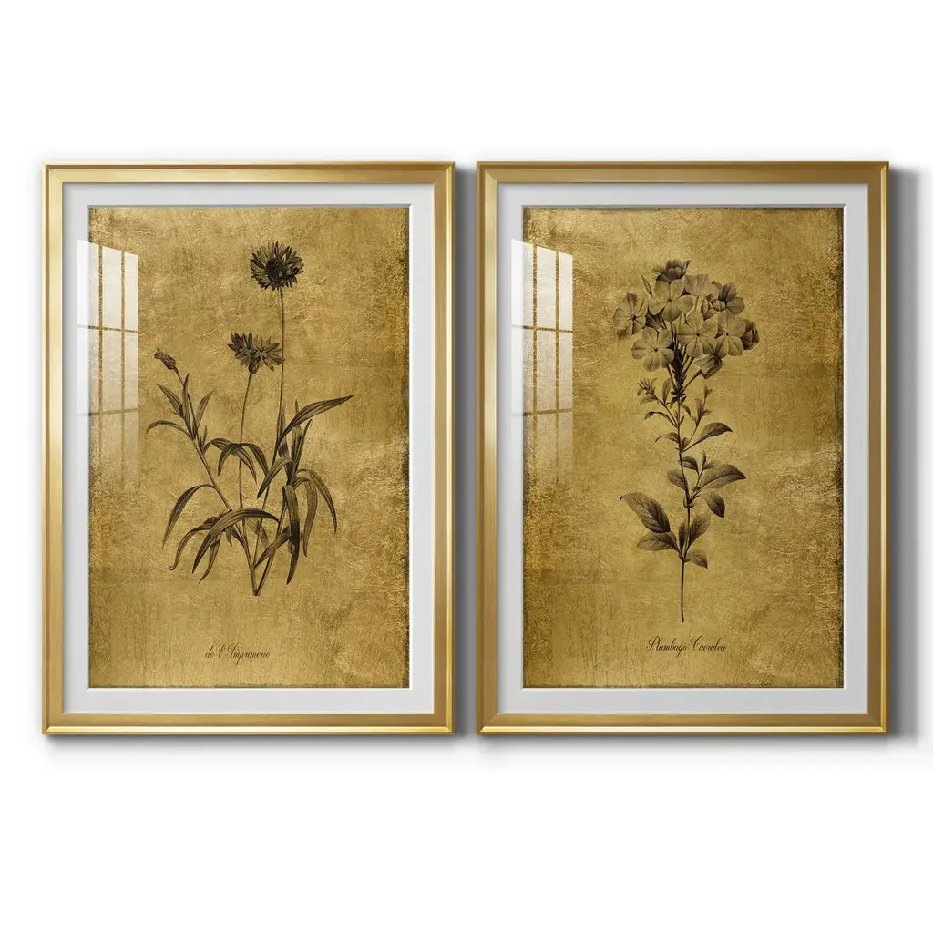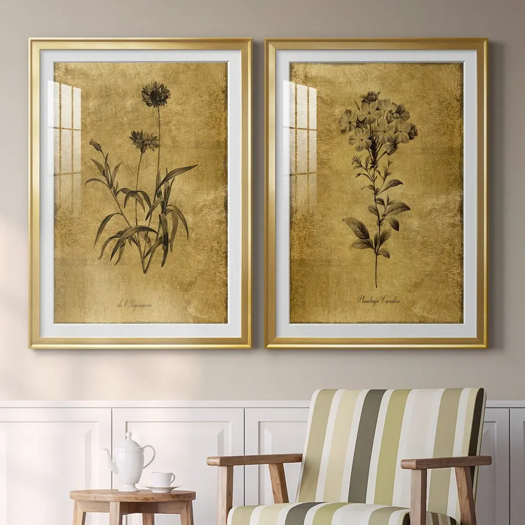 Gold Sketch Botanical I Premium Framed Print - Ready to Hang A Premium Framed Print created to last. Framed in distressed wood and available in an array of sizes and colors Featuring a beveled a solid wood stretcher bar, each piece comes ready to hand 4 SIZES AVAILABLE 30.5''X42.5'' - Overall Size 26.5'X36.5'' - Overall Size 22''x30'' - Overall Size 18''x24'' - Overall Size Each piece is made to order. Each piece comes with hanging hardware. Made in the USA Ready to Hang Giclee Paper Print Acrylic Glass Beveled Matt Board