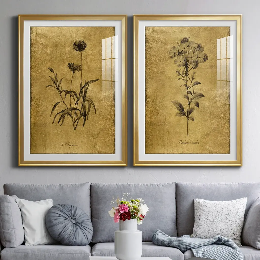 Gold Sketch Botanical I Premium Framed Print - Ready to Hang A Premium Framed Print created to last. Framed in distressed wood and available in an array of sizes and colors Featuring a beveled a solid wood stretcher bar, each piece comes ready to hand 4 SIZES AVAILABLE 30.5''X42.5'' - Overall Size 26.5'X36.5'' - Overall Size 22''x30'' - Overall Size 18''x24'' - Overall Size Each piece is made to order. Each piece comes with hanging hardware. Made in the USA Ready to Hang Giclee Paper Print Acrylic Glass Beveled Matt Board