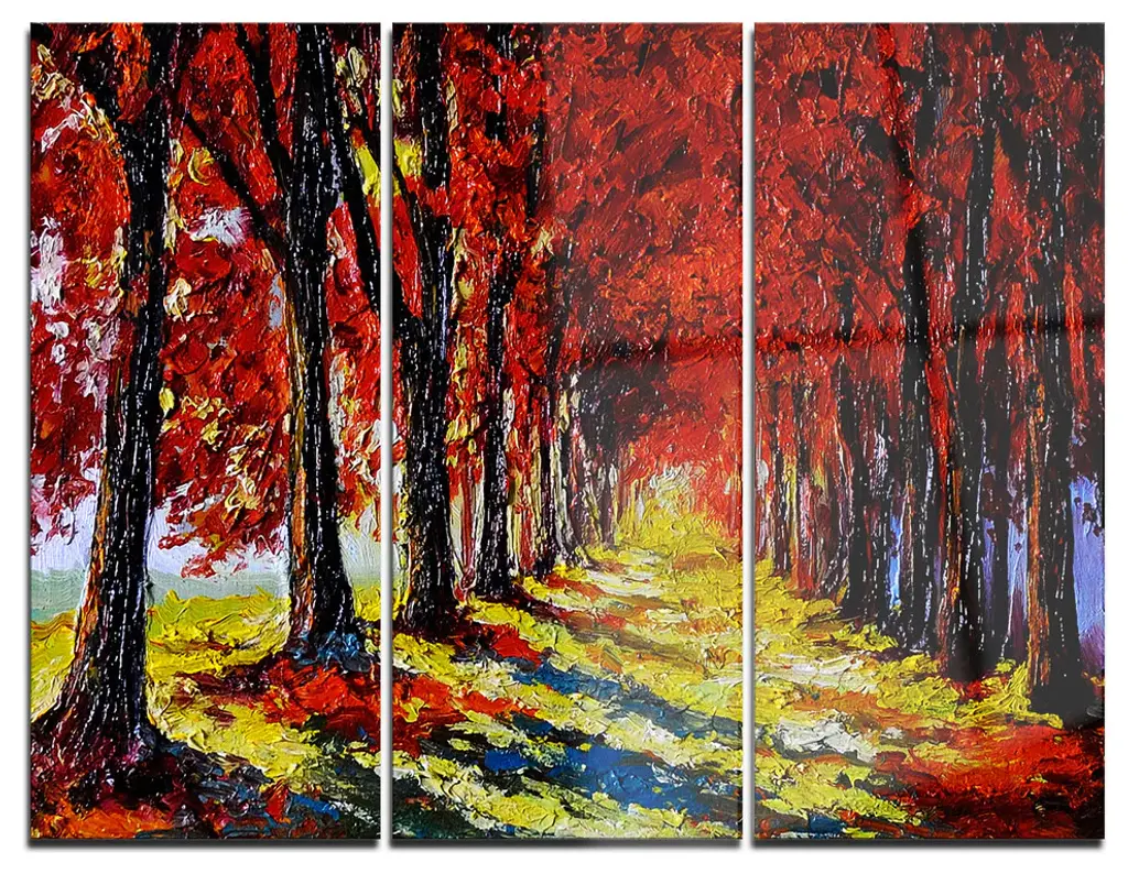 "Golden Autumn" Glossy Metal Wall Art, 3 Panels, 36"x28"