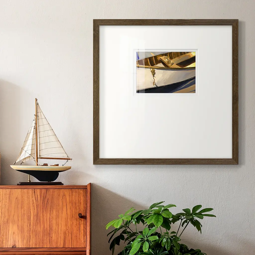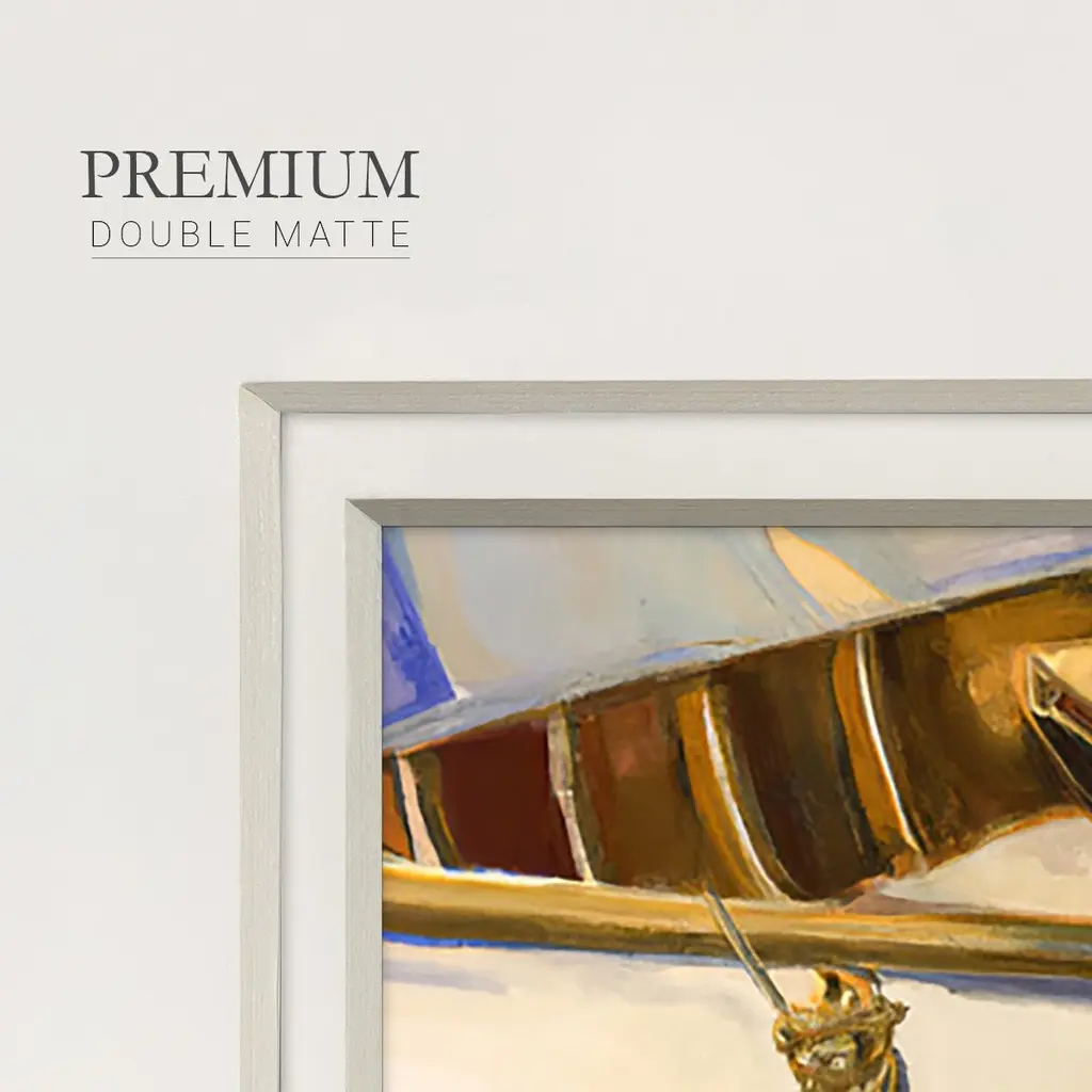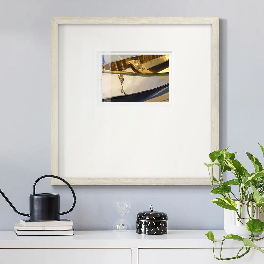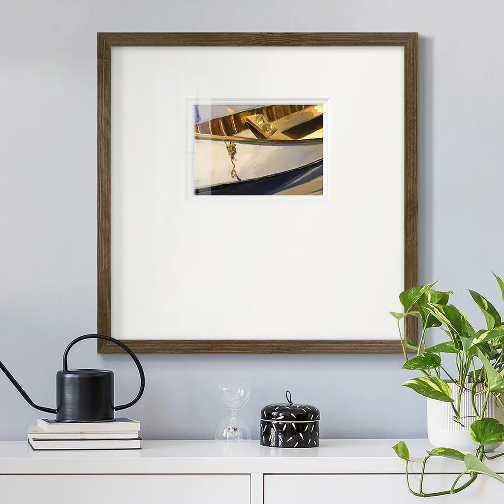 Golden Cano IIIPremium Framed Print A framed cold pressed paper print featuring superior double matting and quality frame. 2 SIZES AVAILABLE 16''X16''' - Overall Size 20''X20''' - Overall Size Each piece is made to order. Each piece comes with hanging hardware. Made in the USA Ready to Hang Giclee Paper Print Plexiglass Beveled Matt Board Double Matte Board