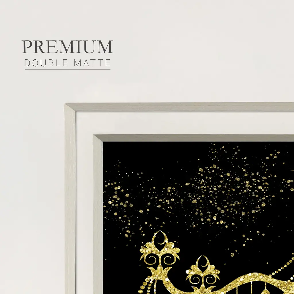 Golden ChandelierPremium Framed Print A framed cold pressed paper print featuring superior double matting and quality frame. 2 SIZES AVAILABLE 16''X16''' - Overall Size 20''X20''' - Overall Size Each piece is made to order. Each piece comes with hanging hardware. Made in the USA Ready to Hang Giclee Paper Print Plexiglass Beveled Matt Board Double Matte Board