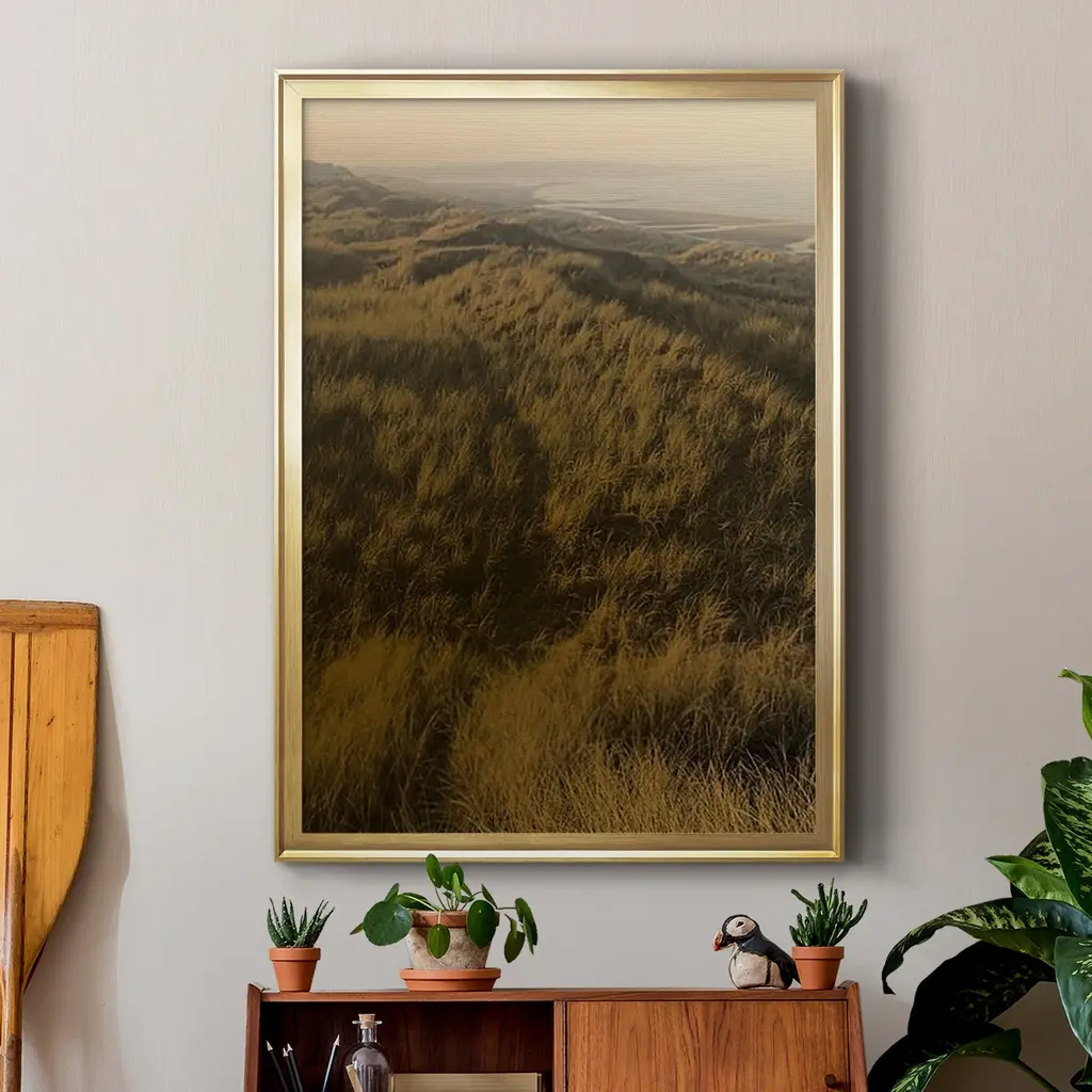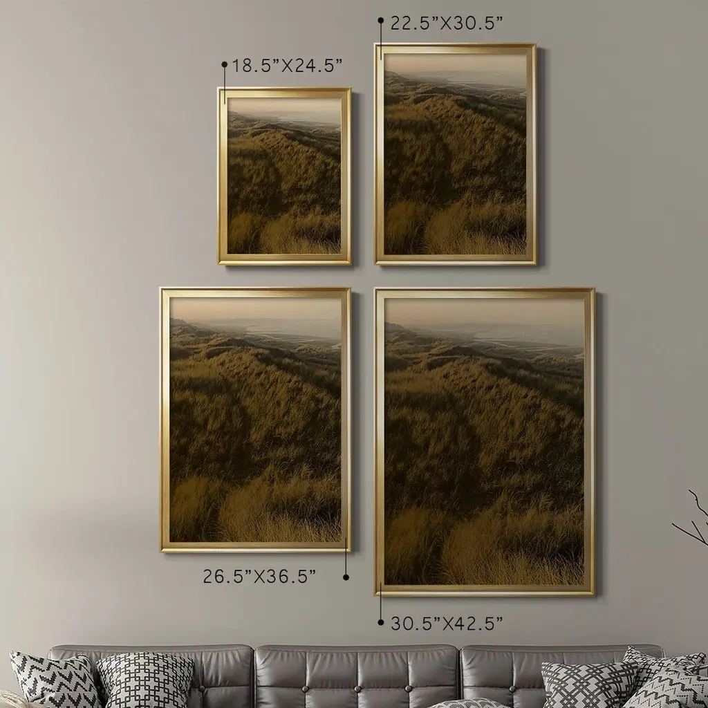 Golden Fog II Premium Framed Print - Ready to Hang A Premium Framed Print created to last. Framed in distressed wood and available in an array of sizes and colors Featuring a beveled a solid wood stretcher bar, each piece comes ready to hand 4 SIZES AVAILABLE 30.5''X42.5'' - Overall Size 26.5'X36.5'' - Overall Size 22.5''x30.5'' - Overall Size 18.5''x24.5'' - Overall Size Each piece is made to order. Each piece comes with hanging hardware. Made in the USA Ready to Hang