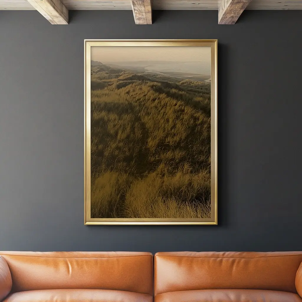 Golden Fog II Premium Framed Print - Ready to Hang A Premium Framed Print created to last. Framed in distressed wood and available in an array of sizes and colors Featuring a beveled a solid wood stretcher bar, each piece comes ready to hand 4 SIZES AVAILABLE 30.5''X42.5'' - Overall Size 26.5'X36.5'' - Overall Size 22.5''x30.5'' - Overall Size 18.5''x24.5'' - Overall Size Each piece is made to order. Each piece comes with hanging hardware. Made in the USA Ready to Hang