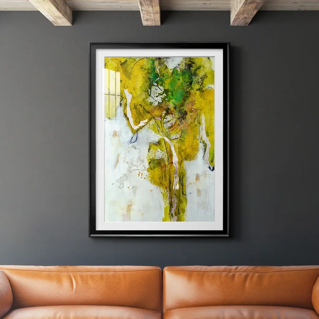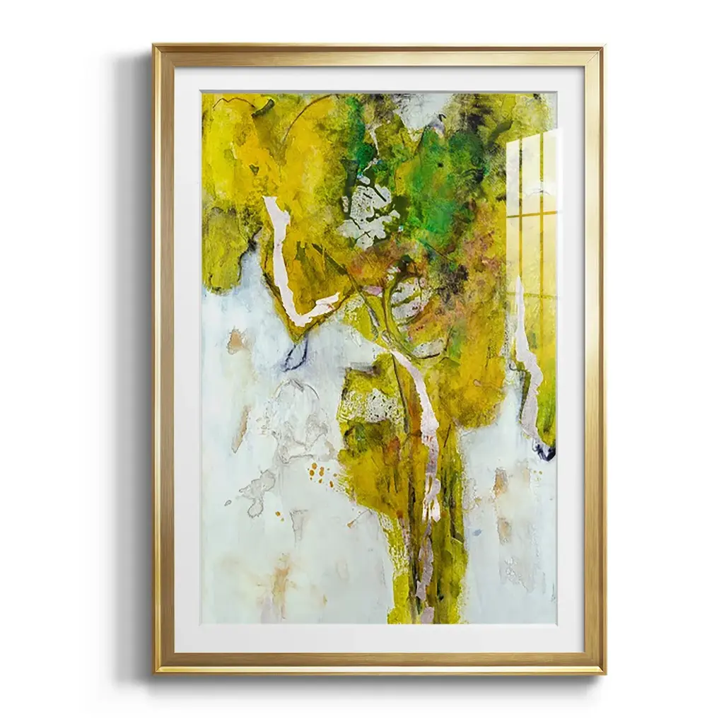 Golden Foliage I Premium Framed Print - Ready to Hang A Premium Framed Print created to last. Framed in distressed wood and available in an array of sizes and colors Featuring a beveled a solid wood stretcher bar, each piece comes ready to hand 4 SIZES AVAILABLE 30.5''X42.5'' - Overall Size 26.5'X36.5'' - Overall Size 22.5''x30.5'' - Overall Size 18.5''x24.5'' - Overall Size Each piece is made to order. Each piece comes with hanging hardware. Made in the USA Ready to Hang Giclee Paper Print Acrylic Glass Beveled Matt Board