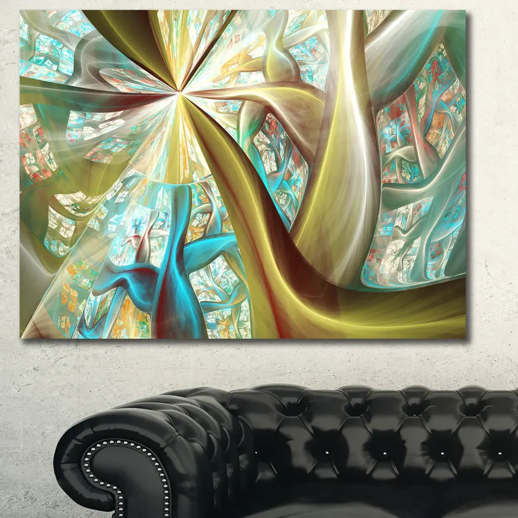 Golden Fractal Exotic Plant Stems, Oversized Abstract Canvas Art Print, 60x40