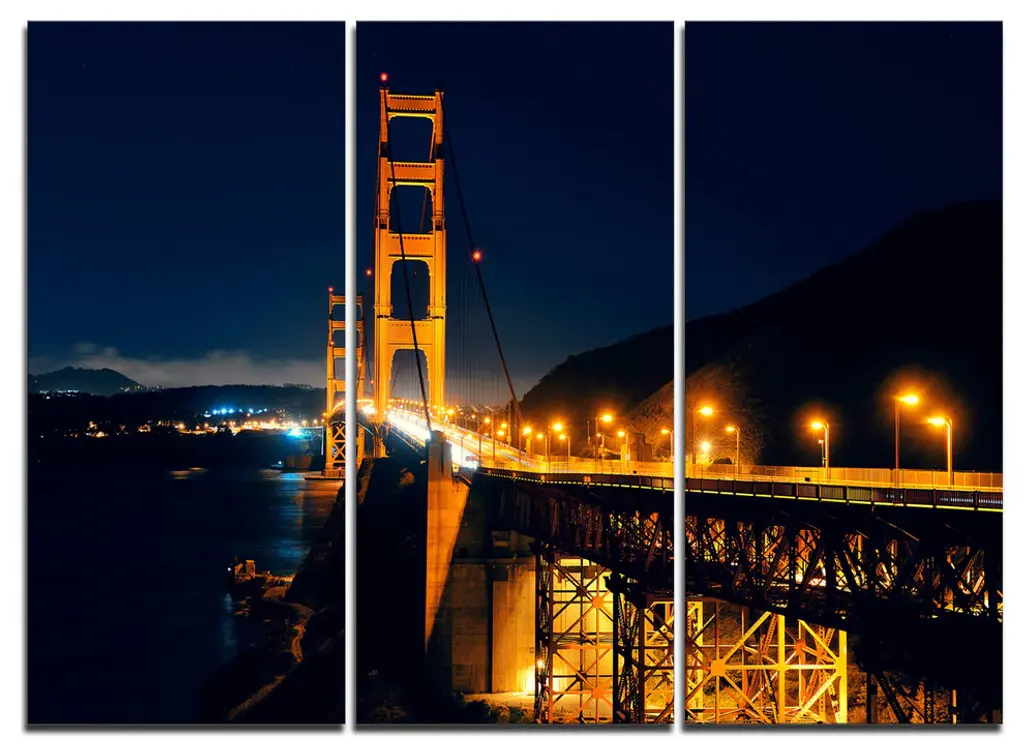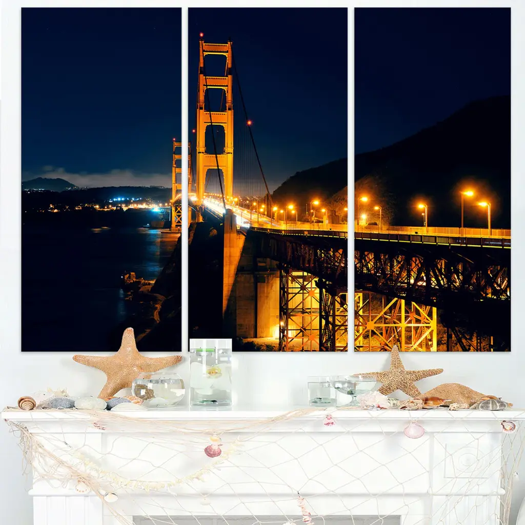 "Golden Gate At Night" Sea Bridge Metal Wall Art, 3 Panels, 36"x28"