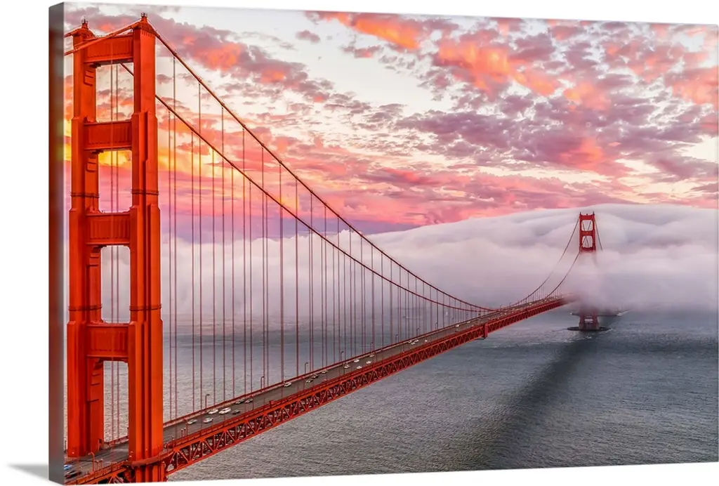 The Golden Gate Bridge in San Francisco canvas art print is sure to make an impression on anyone who sees it. This artwork is gallery wrapped around a 1-inch solid wood frame and arrives carefully packaged and entirely ready to hang on the wall. Design Art only uses the highest resolution and pigments to ensure a crisp colorful print that is never faded or pixelated. This artwork is sure to be a conversation starter in any home or office.