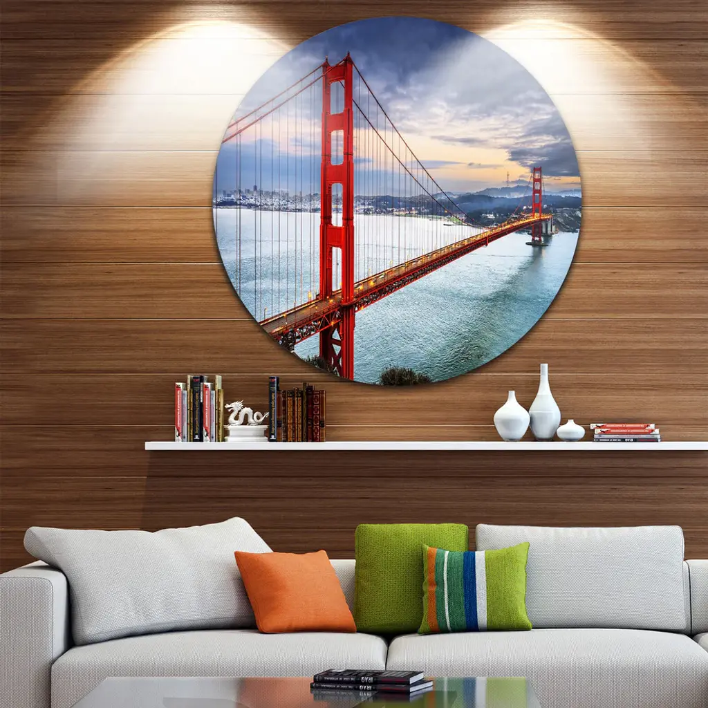 Golden Gate Under Cloudy Sky, Sea Bridge Round Wall Art, 23"