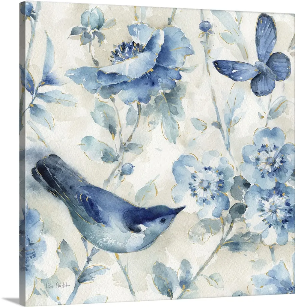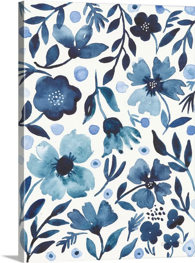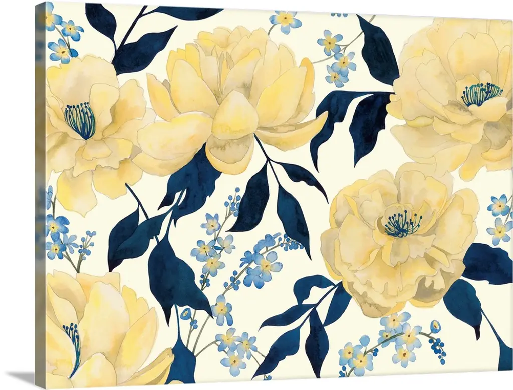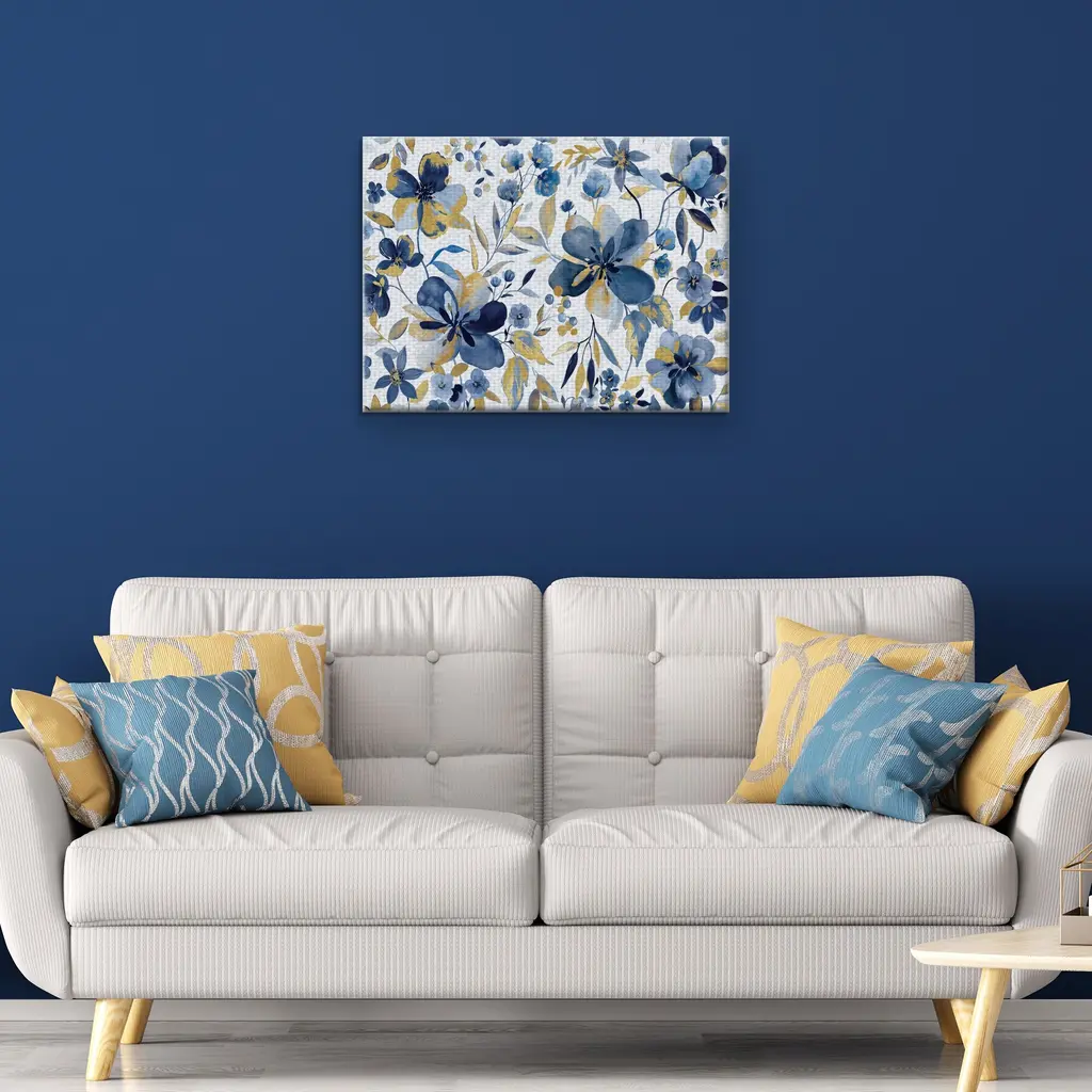 Golden Indigo Garden by Galaxy of Graphics is produced with printing that covers the entirety of the canvas for a sleek and stylish museum-quality look. Our framed prints are made by expert craftsmen who strive to make each canvas the masterpiece