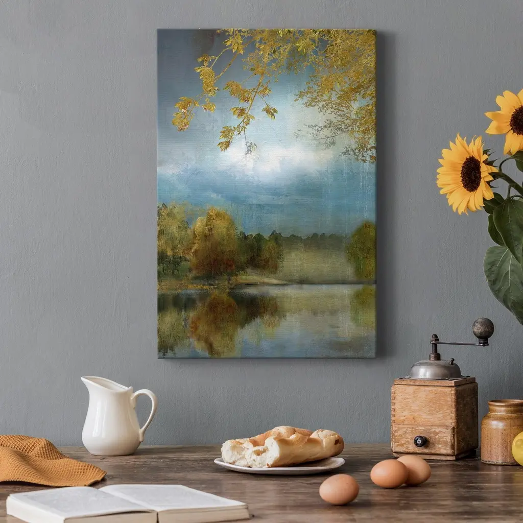 Golden Leaves Premium Gallery Wrapped Canvas - Ready to Hang A premium hand stretched gallery wrapped canvas print created to last. Featuring a beveled a solid wood stretcher bar, each piece comes ready to hand 5 SIZES AVAILABLE 8''X12'' - Overall Size 16'X20'' - Overall Size 24''x32'' - Overall Size 30''x40'' - Overall Size 36''x48'' - Overall Size Each piece is made to order. Built to Last Each piece comes ready to hang Solid wood stretcher Fade and Water resistant Made domestically