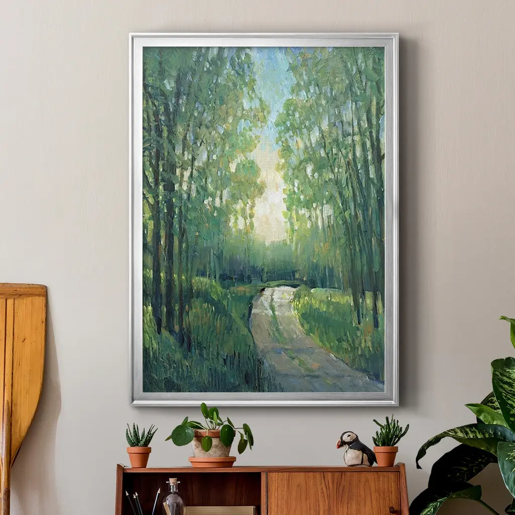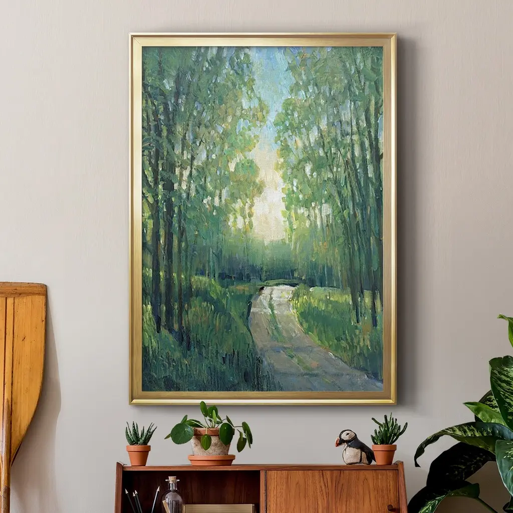 Golden Light Pathways II Premium Framed Print - Ready to Hang A Premium Framed Print created to last. Framed in distressed wood and available in an array of sizes and colors Featuring a beveled a solid wood stretcher bar, each piece comes ready to hand 4 SIZES AVAILABLE 30.5''X42.5'' - Overall Size 26.5'X36.5'' - Overall Size 22.5''x30.5'' - Overall Size 18.5''x24.5'' - Overall Size Each piece is made to order. Each piece comes with hanging hardware. Made in the USA Ready to Hang