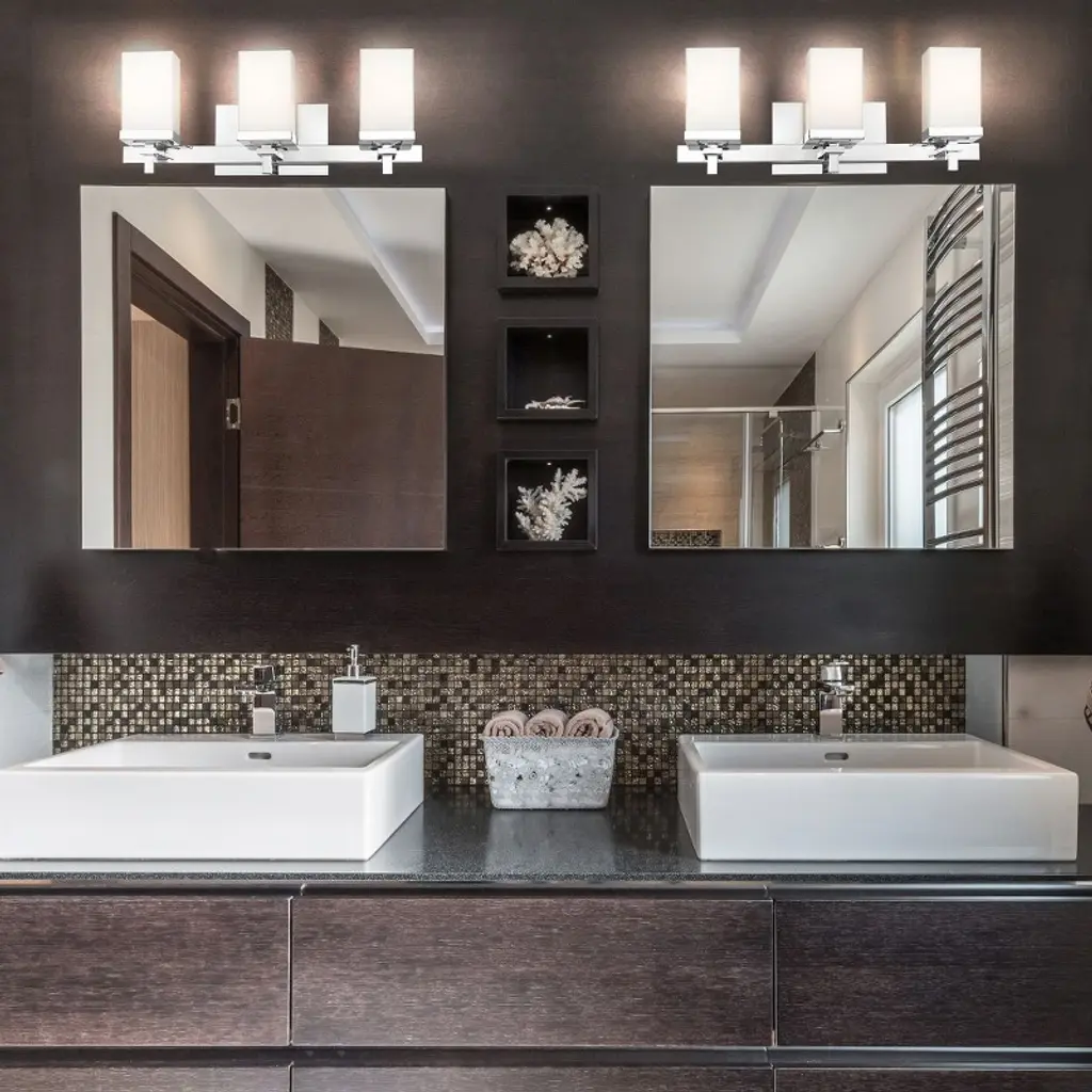 This clean modern design is suitable for transitional to contemporary homes. Available in select modern finishes, square Opal Glass shades enhance the series' elegant look. The fixture is UL/cUL approved for damp location installation and provides well diffused light over a vanity or mirror. The fixture offers a reversible up or down install to suit your style.