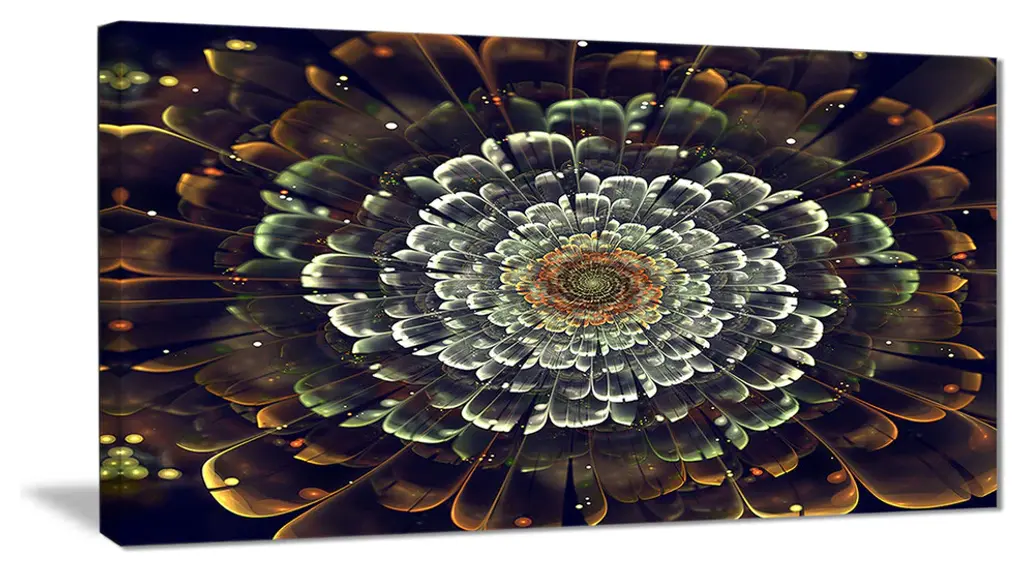The Golden Metallic Fractal Flower canvas art print is sure to make an impression on anyone who sees it. This artwork is gallery wrapped around a 1-inch solid wood frame and arrives carefully packaged and entirely ready to hang on the wall. Design Art only uses the highest resolution and pigments to ensure a crisp colorful print that is never faded or pixelated. This artwork is sure to be a conversation starter in any home or office.