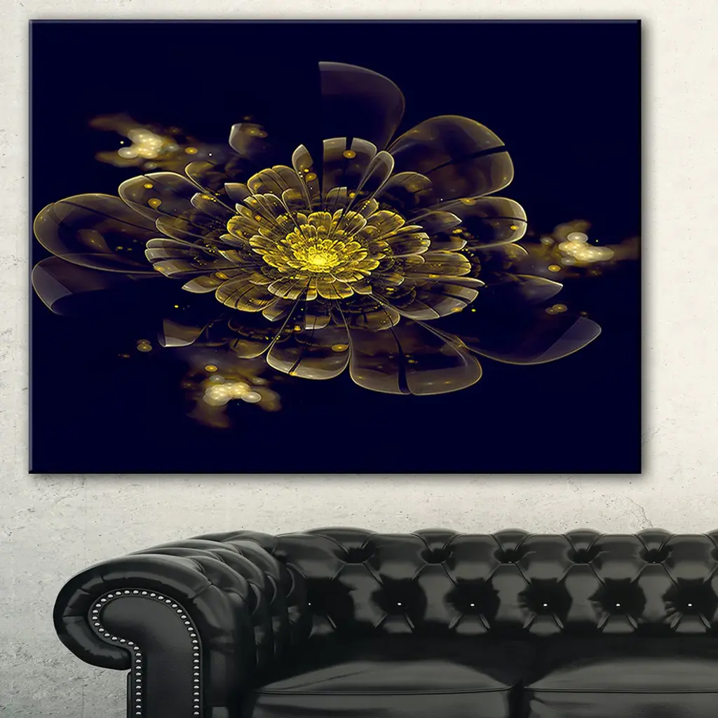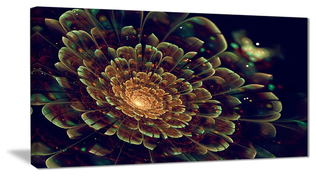 The Golden Metallic Fractal Flower canvas art print is sure to make an impression on anyone who sees it. This artwork is gallery wrapped around a 1-inch solid wood frame and arrives carefully packaged and entirely ready to hang on the wall. Design Art only uses the highest resolution and pigments to ensure a crisp colorful print that is never faded or pixelated. This artwork is sure to be a conversation starter in any home or office.