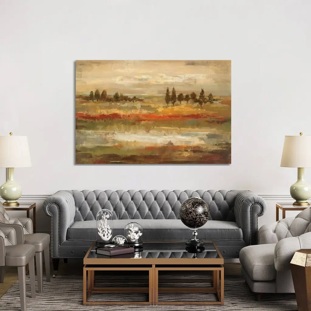 Golden Pastures Landscape Stretched Canvas Wall Art, 17x17