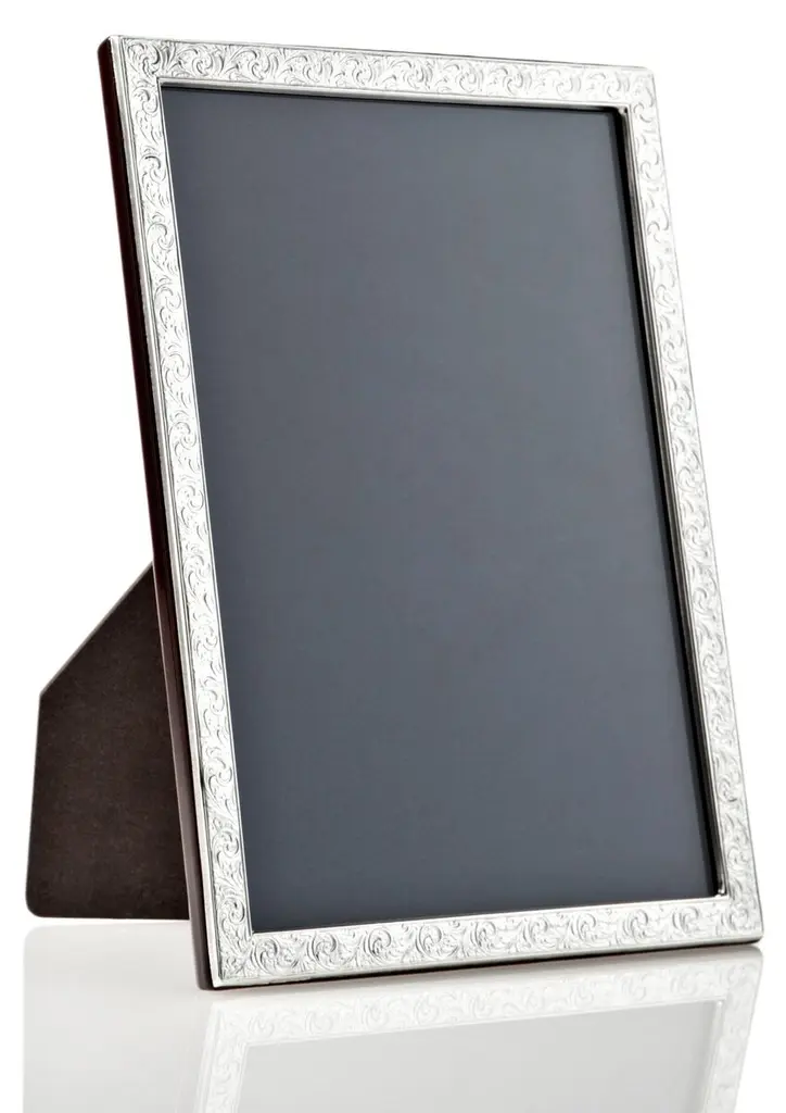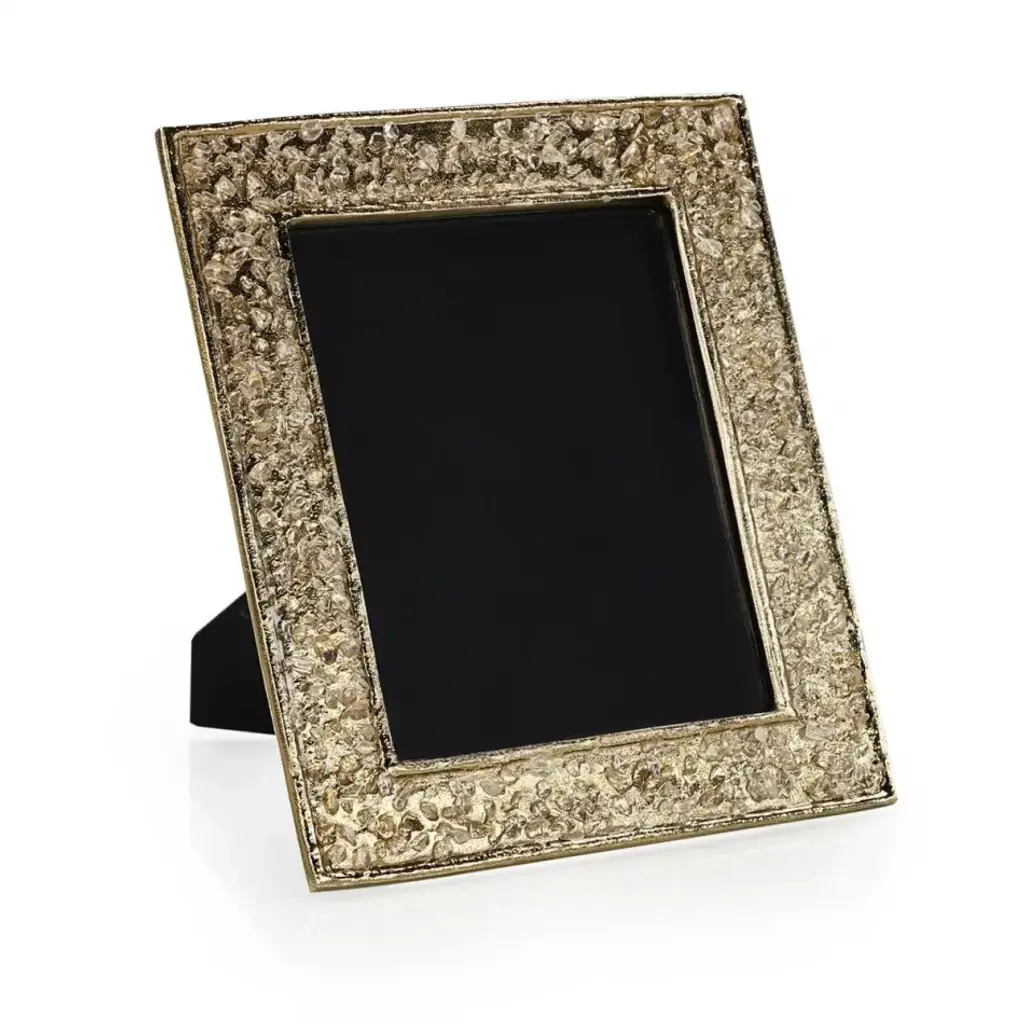 The Golden Path Photo Frame is a stylish home accent for displaying artwork or photography. The aluminum frame in a Champagne finish features small glass shards on the front side, showcasing gorgeous textural depth.