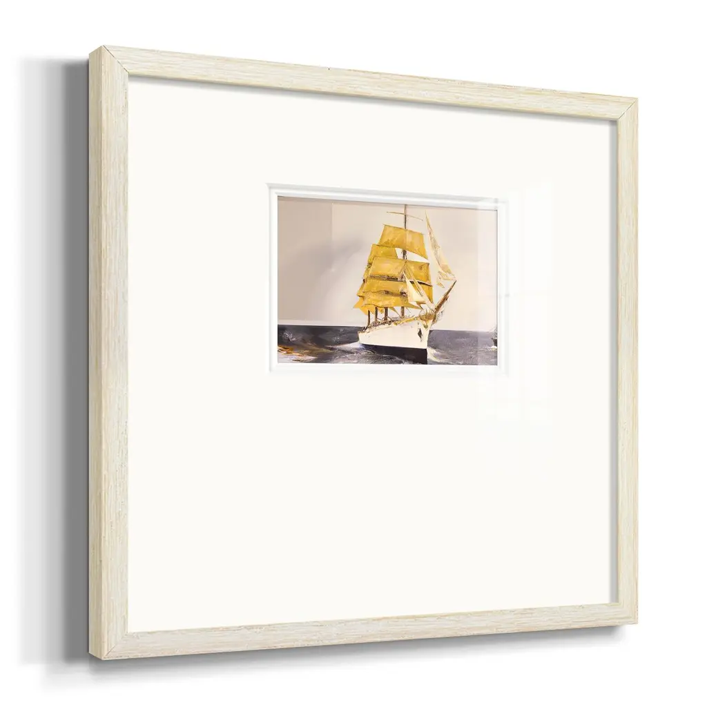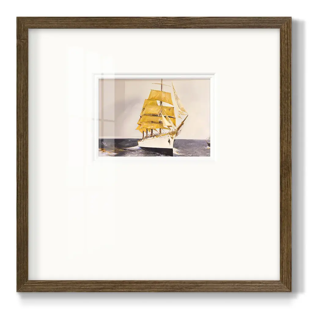 Golden SailorPremium Framed Print A framed cold pressed paper print featuring superior double matting and quality frame. 2 SIZES AVAILABLE 16''X16''' - Overall Size 20''X20''' - Overall Size Each piece is made to order. Each piece comes with hanging hardware. Made in the USA Ready to Hang Giclee Paper Print Plexiglass Beveled Matt Board Double Matte Board