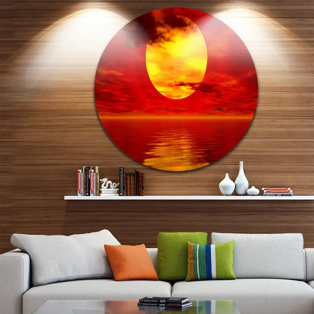 Golden Sun Sinking In Red Waters, Seashore Disc Metal Wall Art, 11"