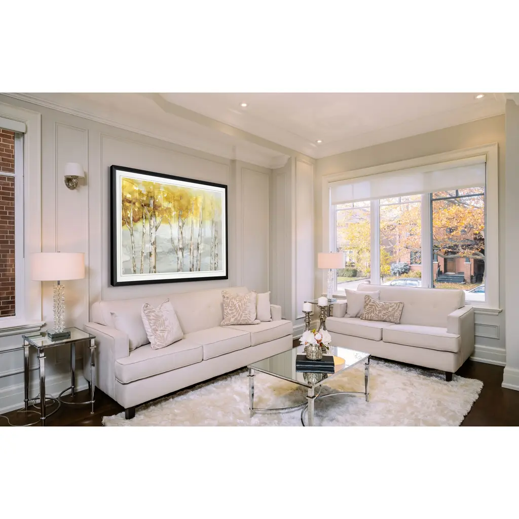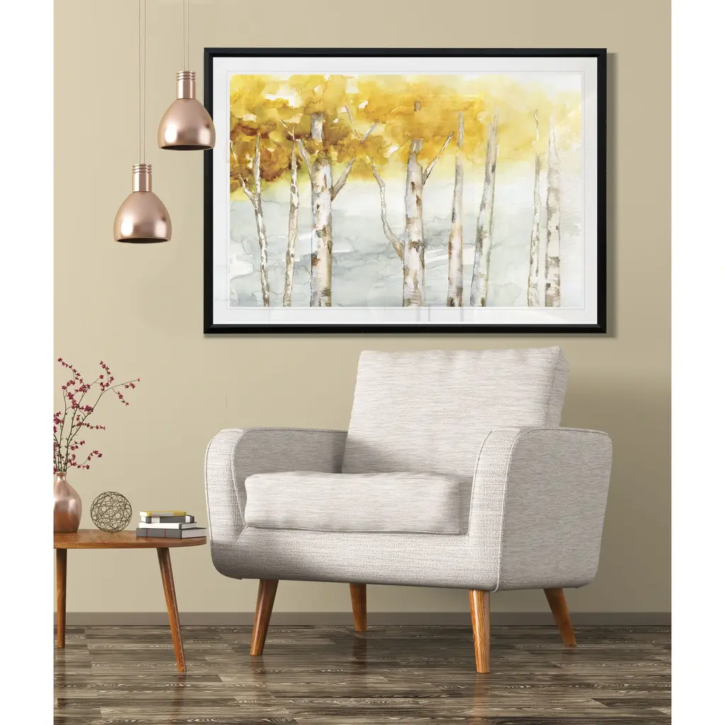 Golden Trees-Framed Giclee Print A premium framed giclee print Printed using the last archival inks. Each print is carefully printed and framed by hand. Each piece features a 2'' Beveled matt board, acrylic glass and comes ready to hand. 4 SIZES AVILABLE 18''X24''- Overall Size 22''x30''- Overall Size 26''x26''' - Overall Size 30''x42''' - Overall Size ** Overall size may vary slightly from piece to piece Each piece is made to order. Built to Last Each piece comes ready to hang Archival Ink 2'' Matt Board Assembled by hand in the America