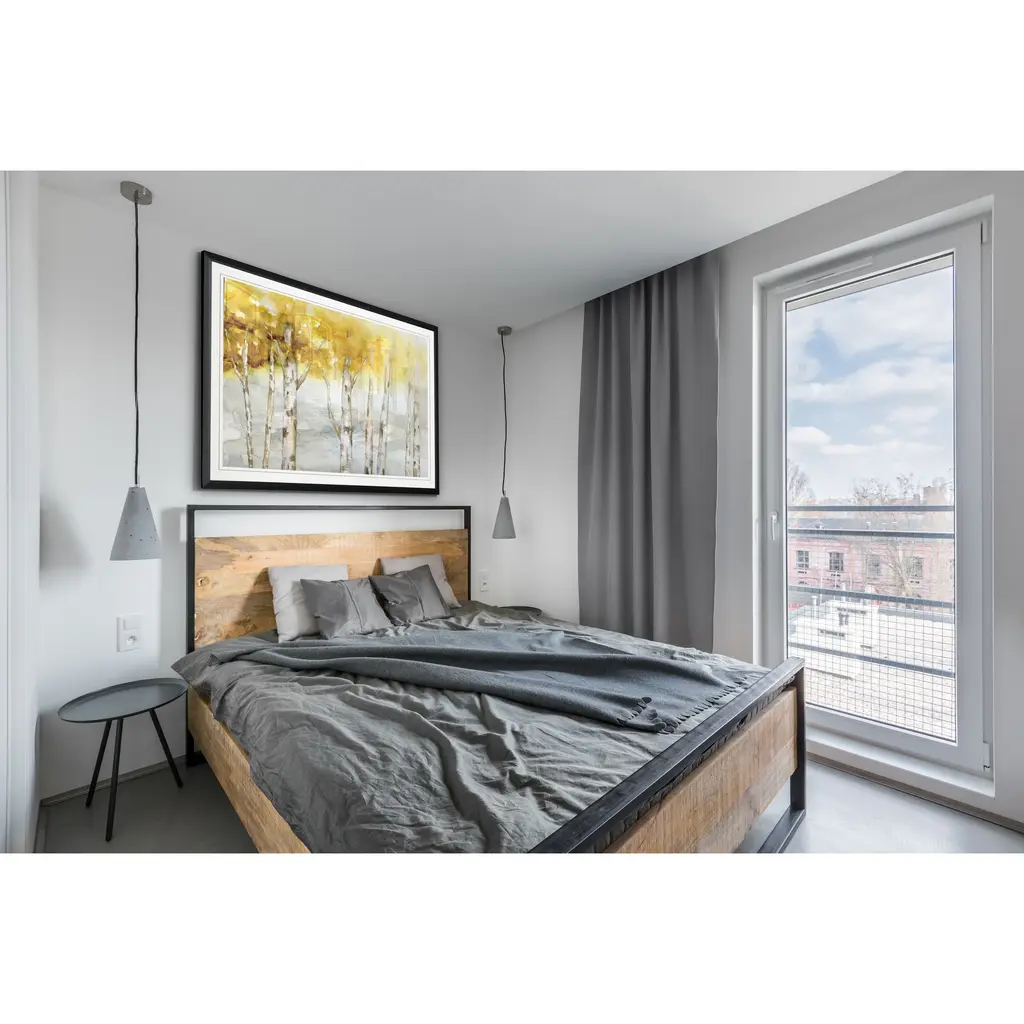 Golden Trees-Framed Giclee Print A premium framed giclee print Printed using the last archival inks. Each print is carefully printed and framed by hand. Each piece features a 2'' Beveled matt board, acrylic glass and comes ready to hand. 4 SIZES AVILABLE 18''X24''- Overall Size 22''x30''- Overall Size 26''x26''' - Overall Size 30''x42''' - Overall Size ** Overall size may vary slightly from piece to piece Each piece is made to order. Built to Last Each piece comes ready to hang Archival Ink 2'' Matt Board Assembled by hand in the America
