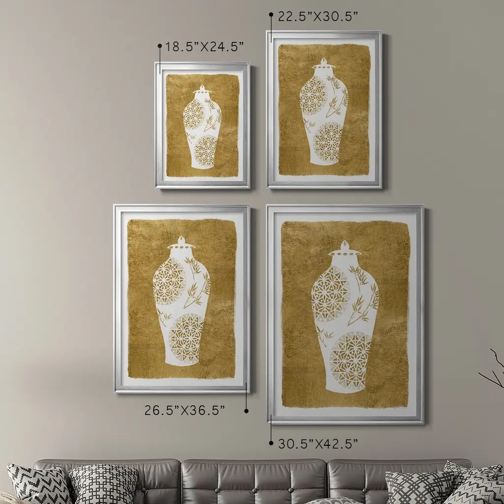Golden Urn II Premium Framed Print - Ready to Hang A Premium Framed Print created to last. Framed in distressed wood and available in an array of sizes and colors Featuring a beveled a solid wood stretcher bar, each piece comes ready to hand 4 SIZES AVAILABLE 30.5''X42.5'' - Overall Size 26.5'X36.5'' - Overall Size 22.5''x30.5'' - Overall Size 18.5''x24.5'' - Overall Size Each piece is made to order. Each piece comes with hanging hardware. Made in the USA Ready to Hang