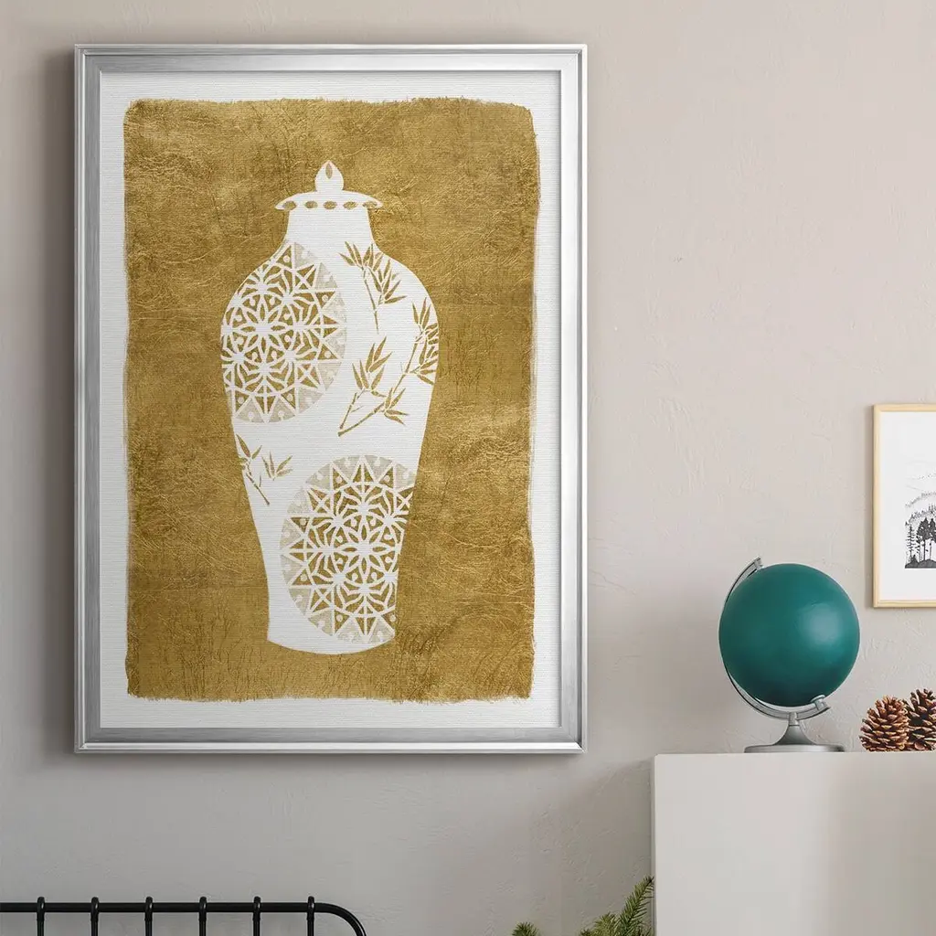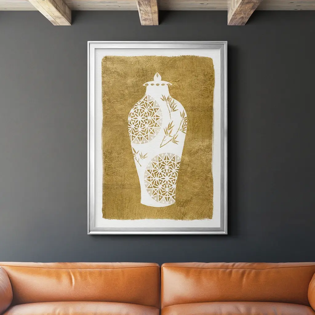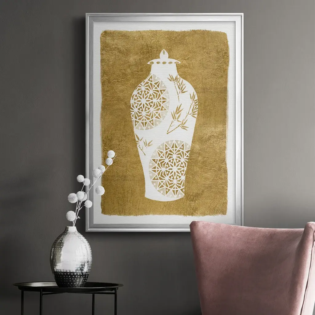 Golden Urn II Premium Framed Print - Ready to Hang A Premium Framed Print created to last. Framed in distressed wood and available in an array of sizes and colors Featuring a beveled a solid wood stretcher bar, each piece comes ready to hand 4 SIZES AVAILABLE 30.5''X42.5'' - Overall Size 26.5'X36.5'' - Overall Size 22.5''x30.5'' - Overall Size 18.5''x24.5'' - Overall Size Each piece is made to order. Each piece comes with hanging hardware. Made in the USA Ready to Hang