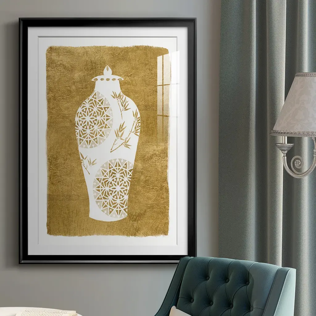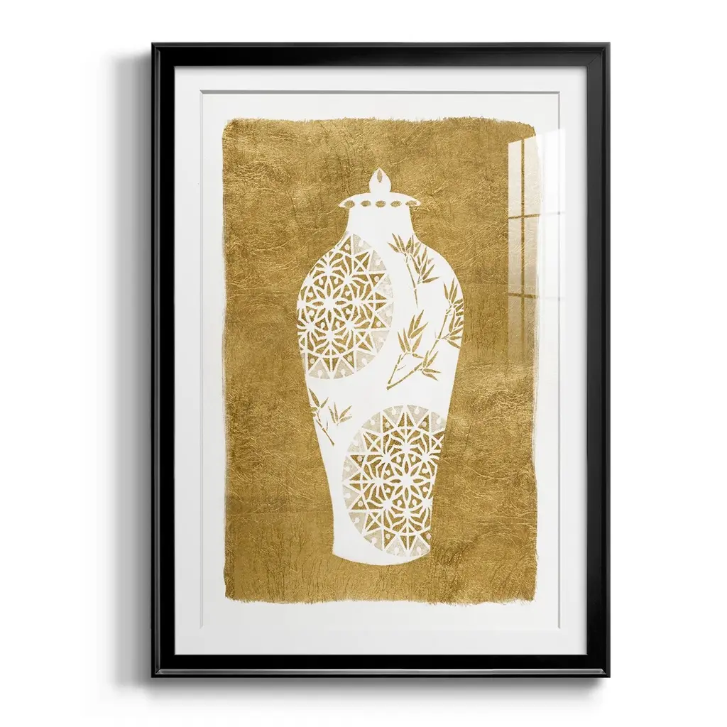 Golden Urn II Premium Framed Print - Ready to Hang A Premium Framed Print created to last. Framed in distressed wood and available in an array of sizes and colors Featuring a beveled a solid wood stretcher bar, each piece comes ready to hand 4 SIZES AVAILABLE 30.5''X42.5'' - Overall Size 26.5'X36.5'' - Overall Size 22.5''x30.5'' - Overall Size 18.5''x24.5'' - Overall Size Each piece is made to order. Each piece comes with hanging hardware. Made in the USA Ready to Hang Giclee Paper Print Acrylic Glass Beveled Matt Board
