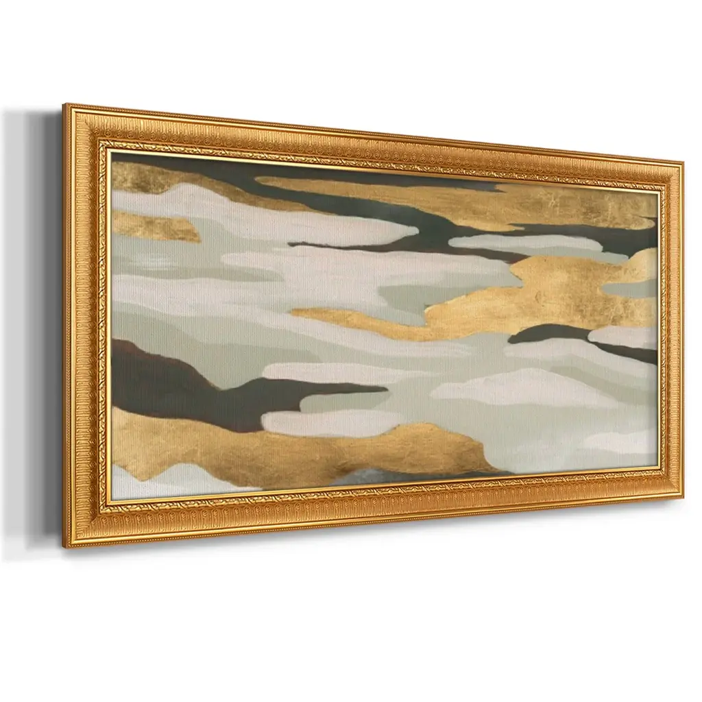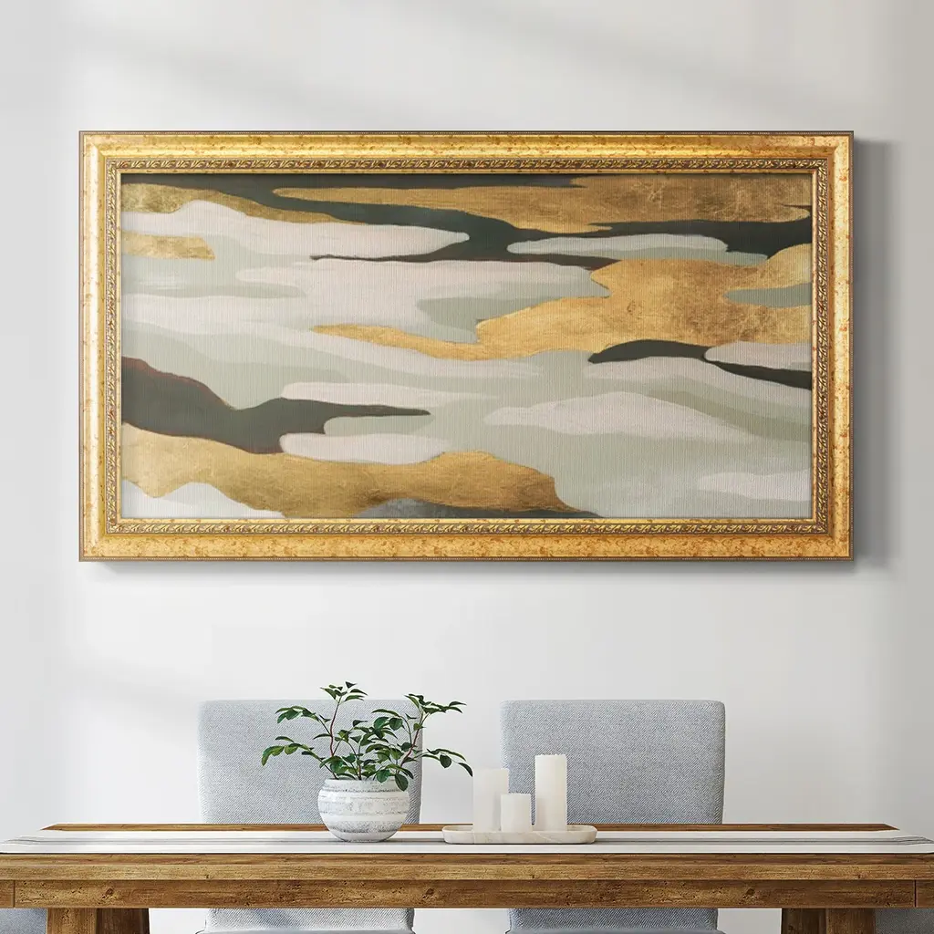 Golden Valley Sands I Premium Framed Canvas- Ready to Hang A Premium Framed Canvas created to last. Framed in distressed wood and available in an array of sizes and colors Featuring a beveled a solid wood stretcher bar, each piece comes ready to hand 3 SIZES AVAILABLE 21''X37'' - Overall Size 25''X45'' - Overall Size 29''x53'' - Overall Size Each piece is made to order. Each piece comes with hanging hardware. Made in the USA Ready to Hang Giclee Paper Print Acrylic Glass Beveled Matt Board