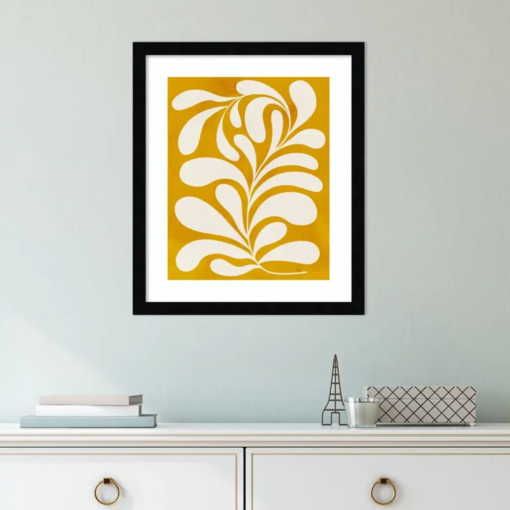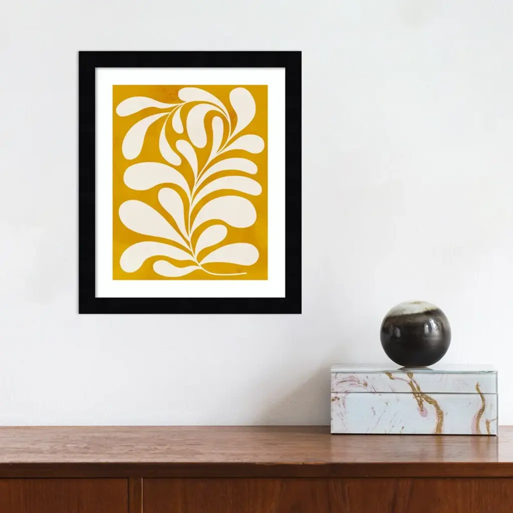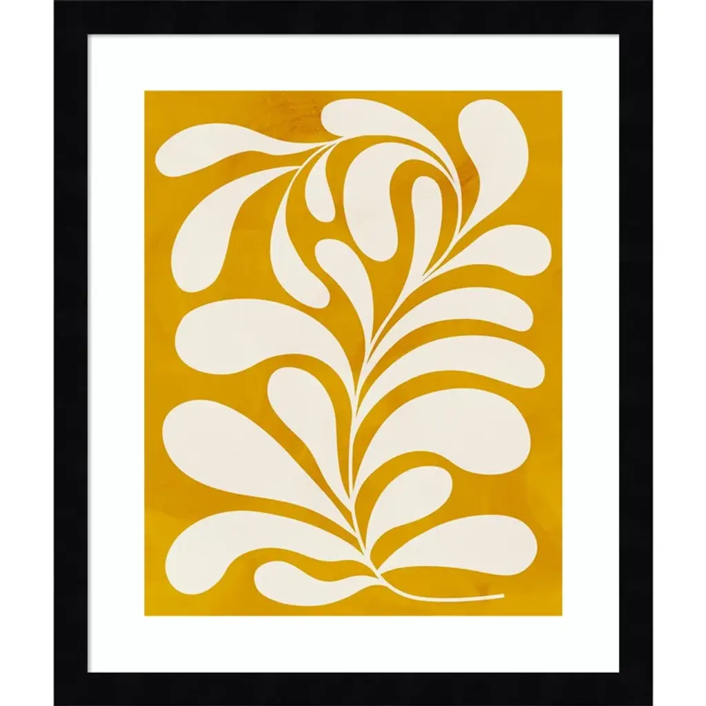 Elevate your space with this framed graphic art piece, boasting abstract botanicals and shapes. The closed corner frame complements the modernity of the artwork, making it a versatile addition to residential or non-residential settings.