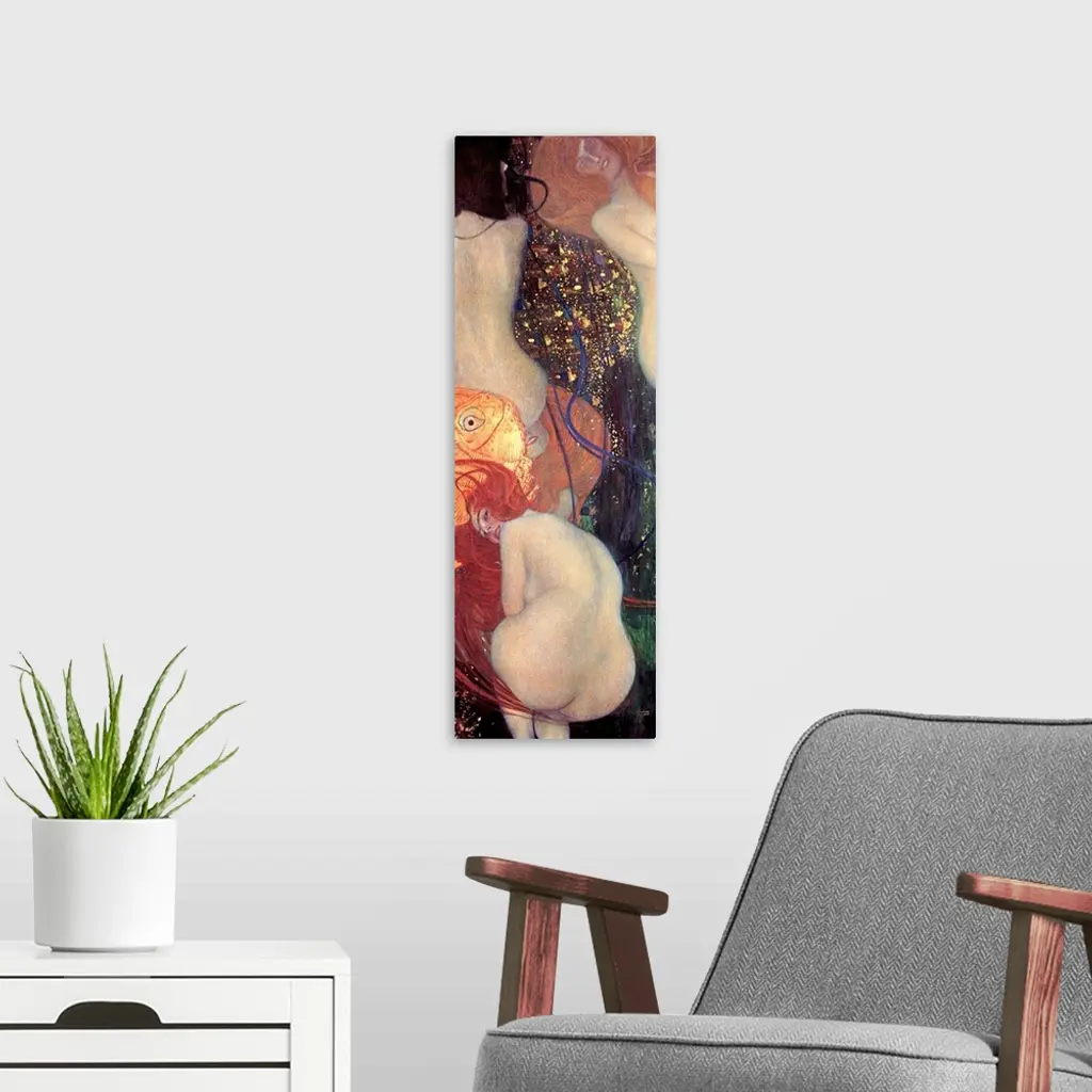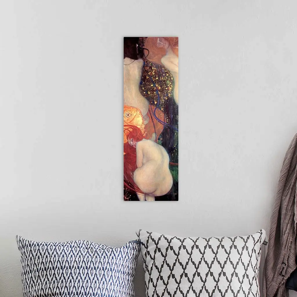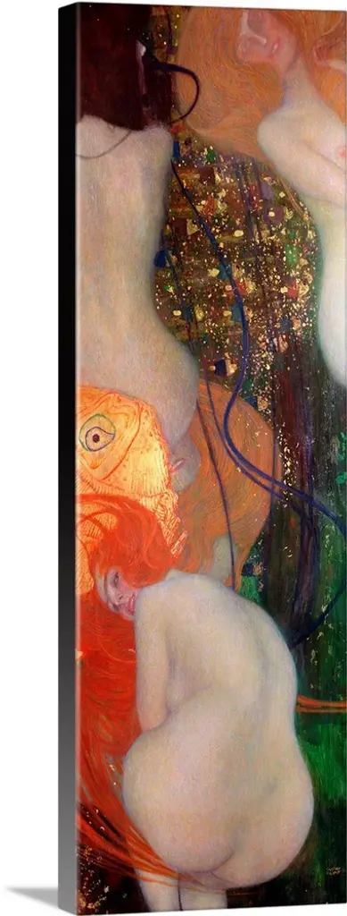 A vertical painting from very early 20th century shows nude female figures in provocative poses.