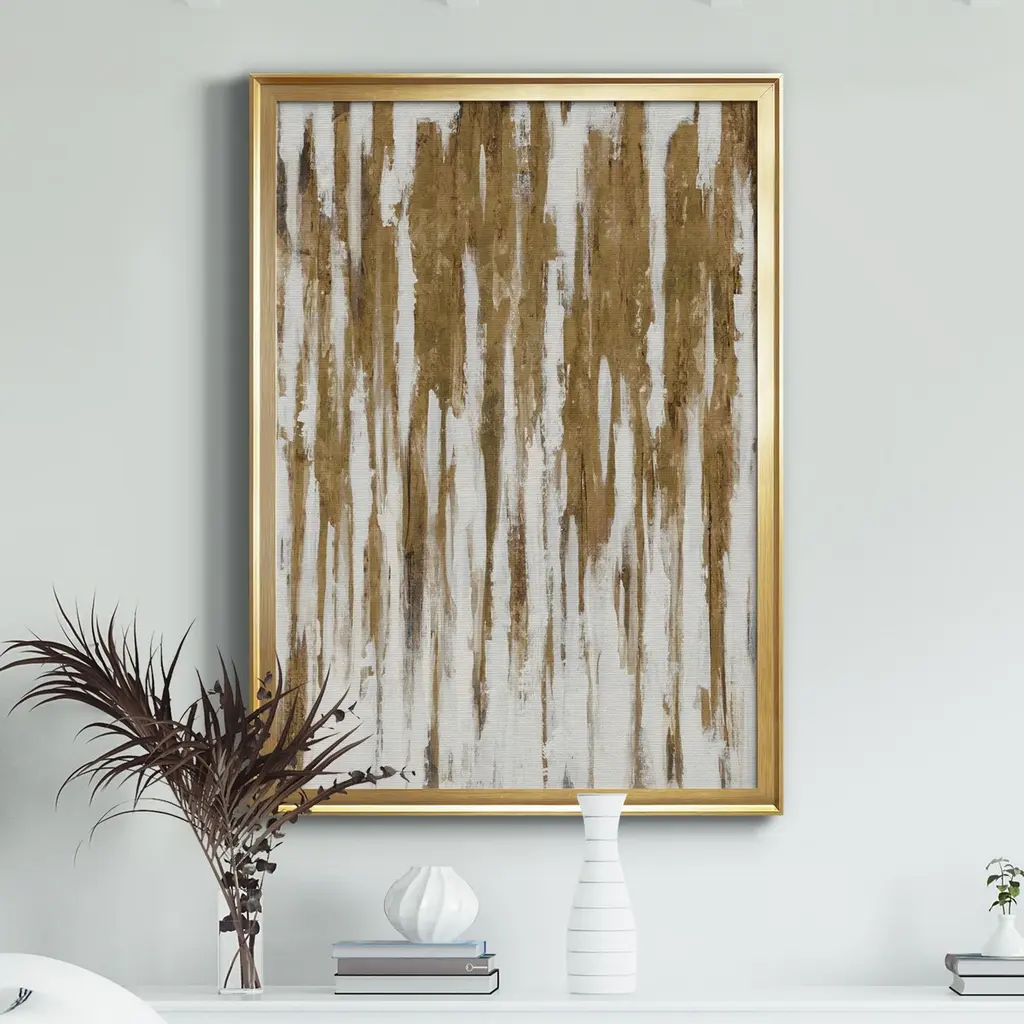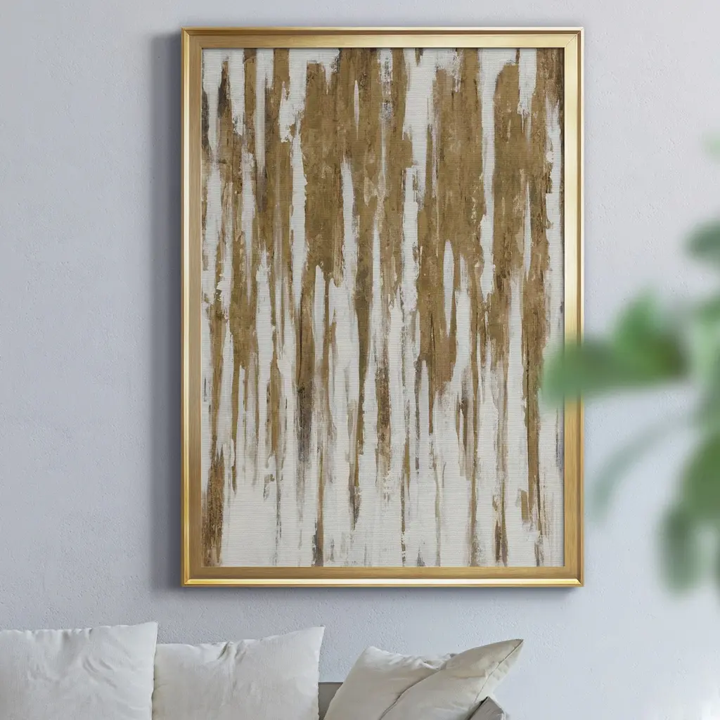 Goldsicles Premium Framed Canvas - Ready to Hang A Premium Framed Canvas created to last. Framed in distressed wood and available in an array of sizes and colors Featuring a beveled a solid wood stretcher bar, each piece comes ready to hand 4 SIZES AVAILABLE 30.5''X42.5'' - Overall Size 26.5'X36.5'' - Overall Size 22''x30'' - Overall Size 18''x24'' - Overall Size Each piece is made to order. Each piece comes with hanging hardware. Made in the USA Ready to Hang Giclee Paper Print Acrylic Glass Beveled Matt Board