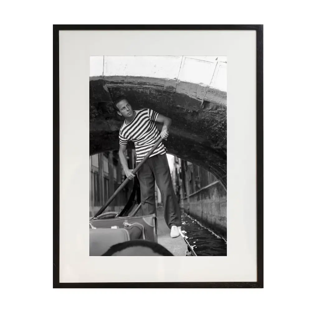 Part of "La Bella Vita" collection, this photograph depicts a gondolier plying his trade, in 1955. Photo by Nocella/Three Lions/Getty Images. Print size: 12x16"/30x40 cm. Framed size: 16x23x2"/40x58x5 cm. Accompanied by a certificate of authenticity.