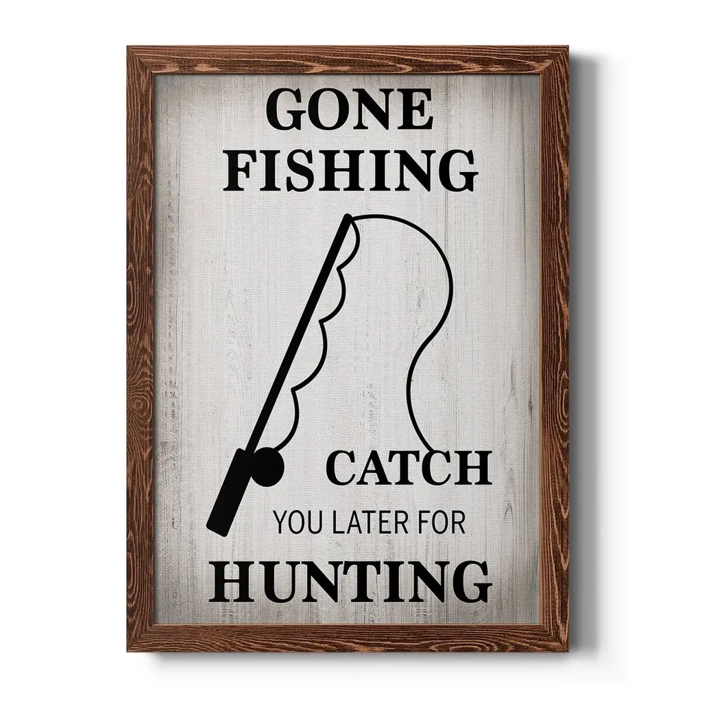 Gone Fishing-Premium Framed Canvas - Ready To Hang - 27.5x37.5 - Walnut