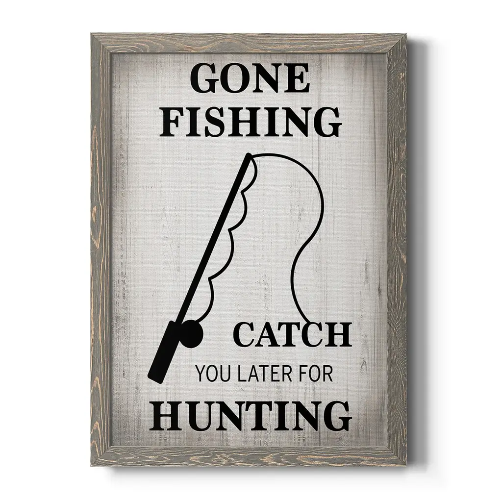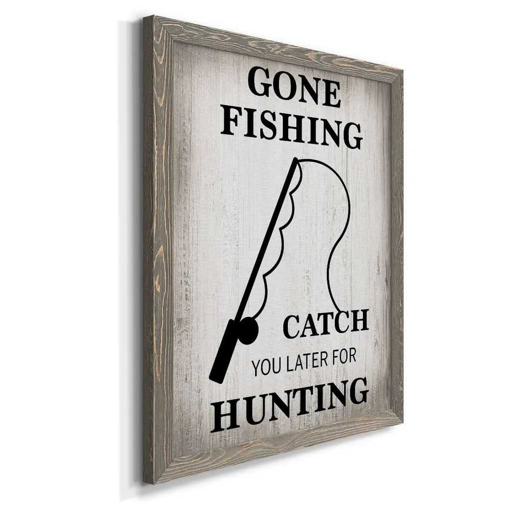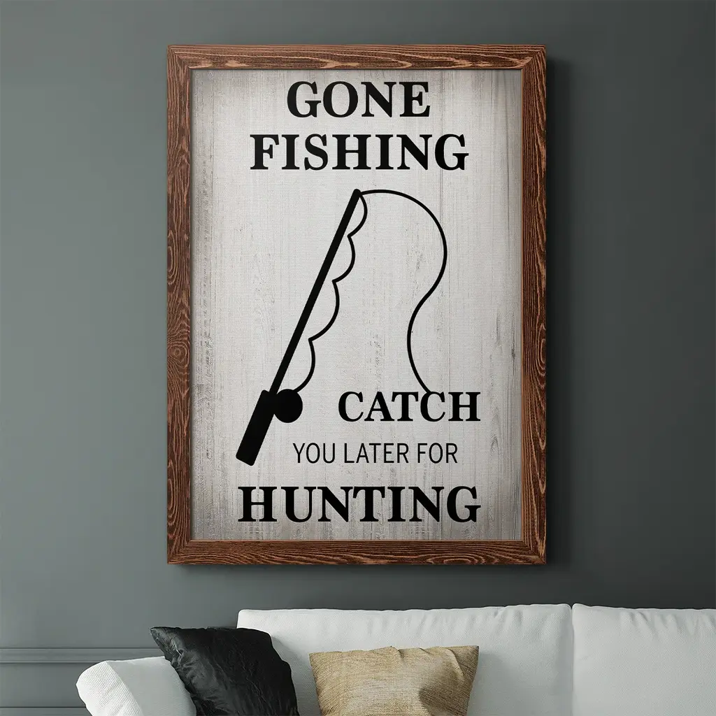 Gone Fishing-Premium Framed Canvas - Ready To Hang - 31.5x43.5 - Grey